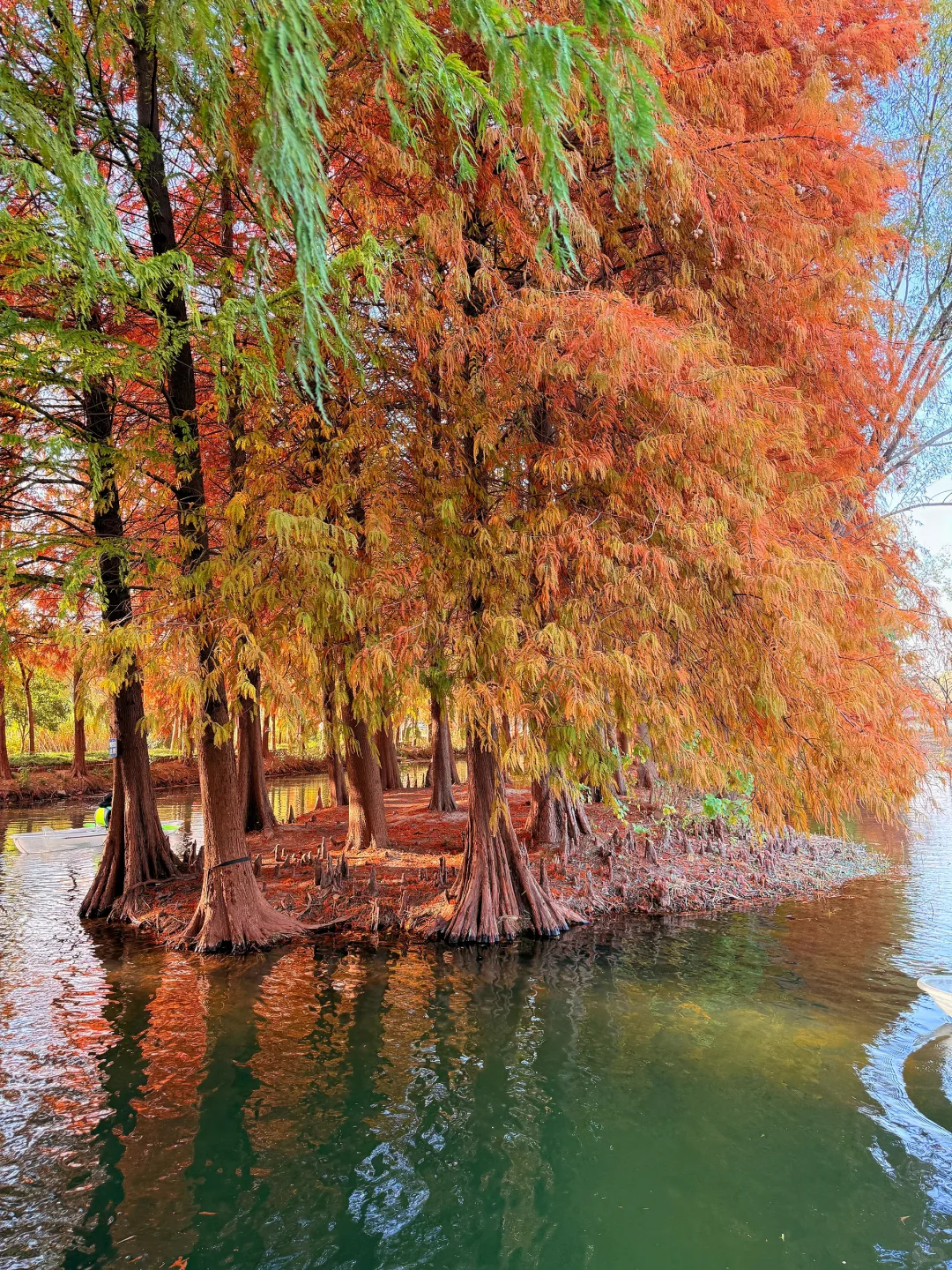 - 免费🆓的红衫林真香啊~ 我是从新-渔桥进来的 顺着划船一直往里走,基本已经红了 相对于全红我更喜欢现在这种红❤️黄🧡绿💚 真的很美像一幅画[哭惹R] 下周应该会全红❤️🔥 -