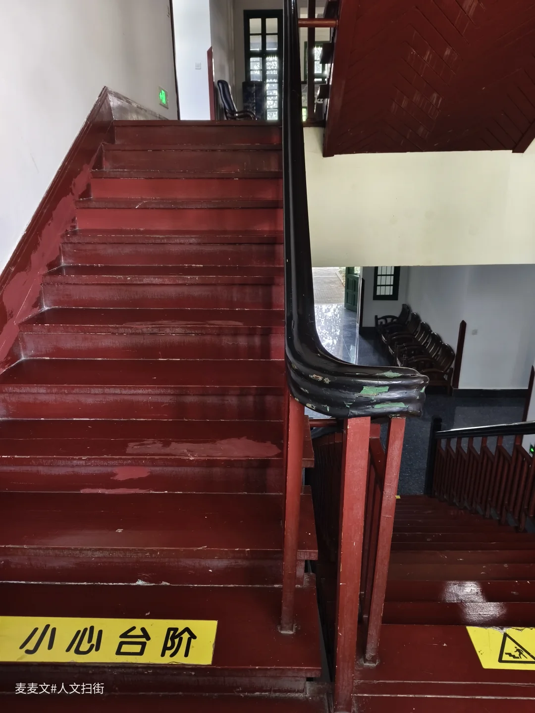 走进位于重庆市北碚区粮食路51号的国立江苏医学院旧址内部,瞬间被那一抹深沉的红木地板吸引。阳光透过窗户,洒在上面,光影交错,仿佛能看到往昔岁月的流转。 脚下的红木地板,纹理清晰,泛着古朴的光泽,历经时光打磨,更显厚重。木质楼梯扶手与栏杆设计简洁且带有一定复古感。它们承载着历史的足迹,每一步踏上去,都像是与过去对话。 走廊的中式布置,书法作品、传统桌椅,与红木地板相得益彰,营造出浓郁的复古氛围。在这里,仿佛时间都慢了下来,让人沉浸在对那段医学发展历程的遐思中,不舍离去。
