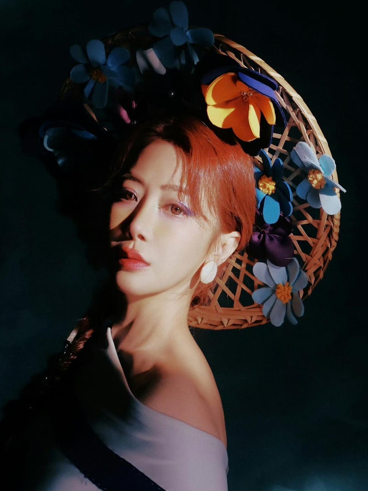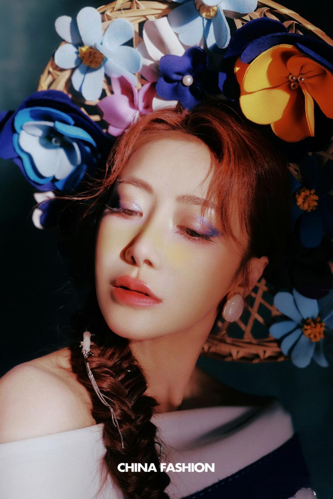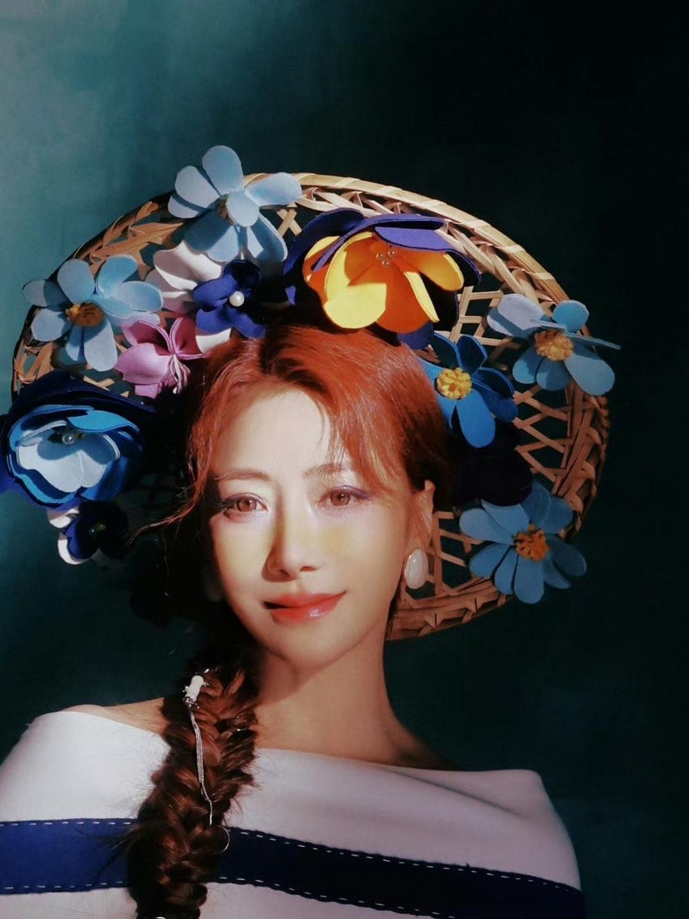 陈紫函这组国风时尚大片,直接把“东方美学的浪漫狂想”拍活了! 谁能想到斗笠能美成这样?竹编骨架裹满缎面花簇,蓝紫粉黄撞得明艳又柔媚,连花蕊都缀着珍珠细闪,戴在头上像顶了一整个春日花圃;一头红棕长发编成长辫,银链流苏顺着发梢垂落,冷艳里裹着点野性的灵动感。