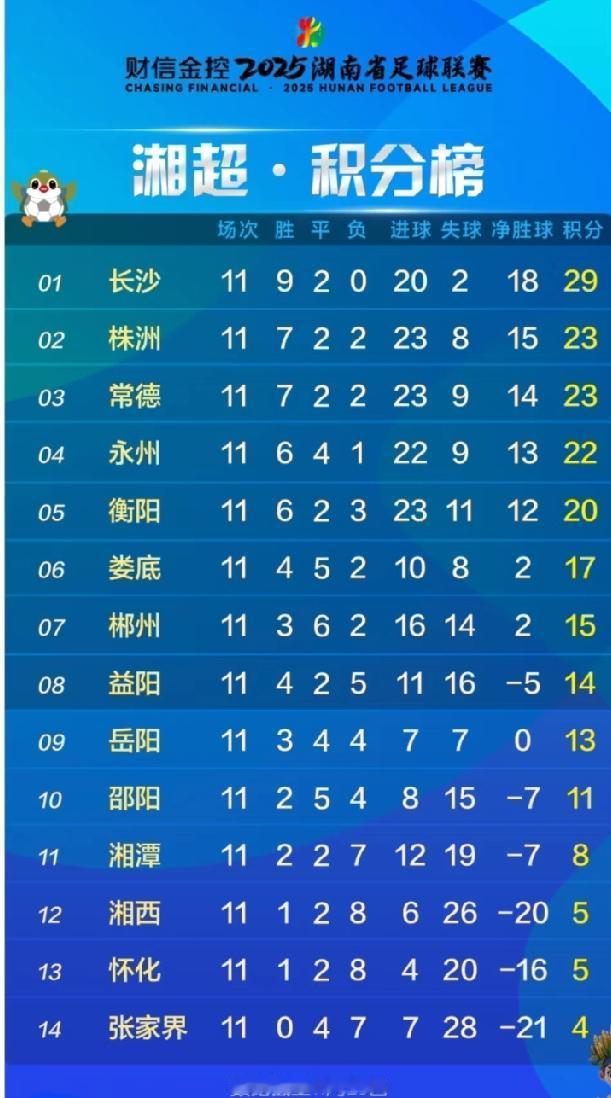 湘超第12轮的七场比赛激战正酣,下半场80分钟现在的实时比分是:永州1:2常德,衡阳0:2娄底,益阳1:1株洲,邵阳1:1郴州,湘西0:5湘潭,长沙4:1怀化,张家界0:2岳阳。 关键的三场比赛,益阳vs株洲,张家界vs岳阳,邵阳vs郴州,将很有可能决定哪两只球队。目前,这三场的比分基本都在大家的意料之中。如果这样比分保持到结束,那岳阳将反超益阳来到积分榜第8位,和郴州同积16分,加上益阳15分,那最后一轮就有好戏看了!