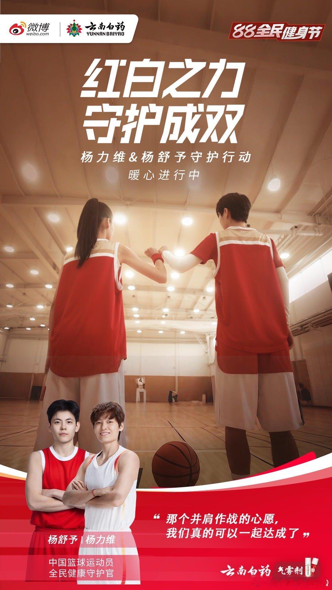 我的球场防护伙伴 赛场上,杨舒予是冲锋的利刃,突破上篮无所畏惧;杨力维是坚实的护盾,防守补位稳如磐石。姐妹同心,一个向前冲锋,一个守护后方,彼此成就最默契的篮球搭档。 正如云南白药气雾剂红白双瓶的完美配合:红瓶急性镇痛,迅速缓解扭伤肿痛;白瓶持续修复,深入滋养运动损伤。无论你是球场上的“冲锋者”还是“守护者”,都有云南白药气雾剂做你的最强后援!