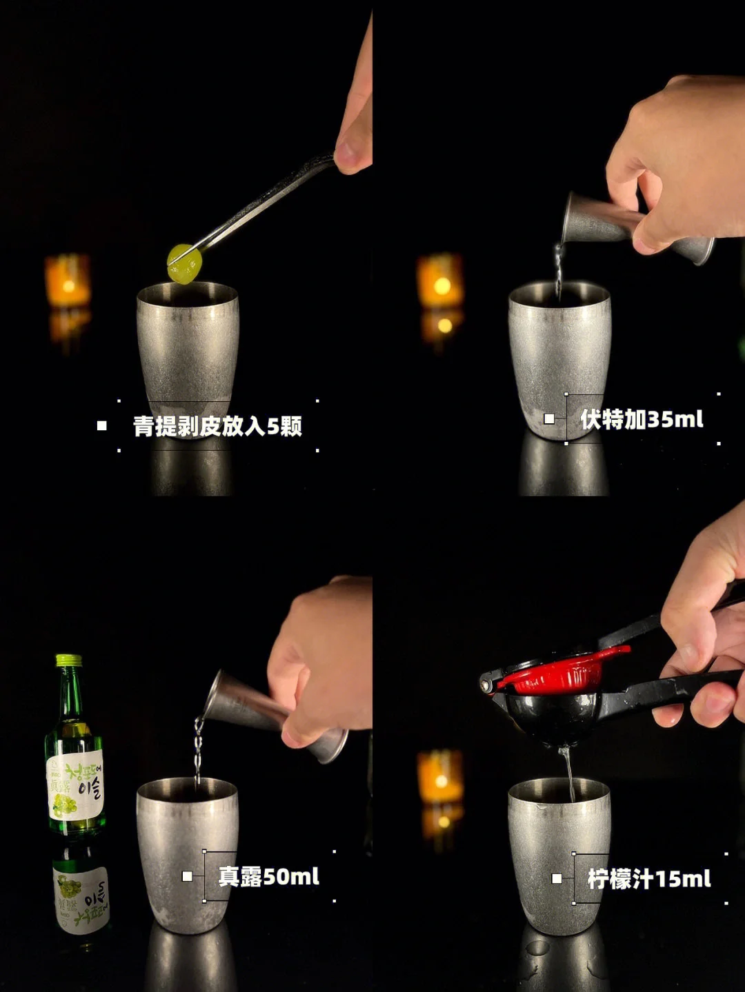 这款特调以真露-青葡萄味为基调,加以新鲜青提使得果味更加凸显,搭配乌龙茶淡淡茶香口感层次分明,伏特加的加入多了一丝厚烈,整体搭配相得益彰..有给到惊喜!快来试品!~~~~[赞R][赞R]