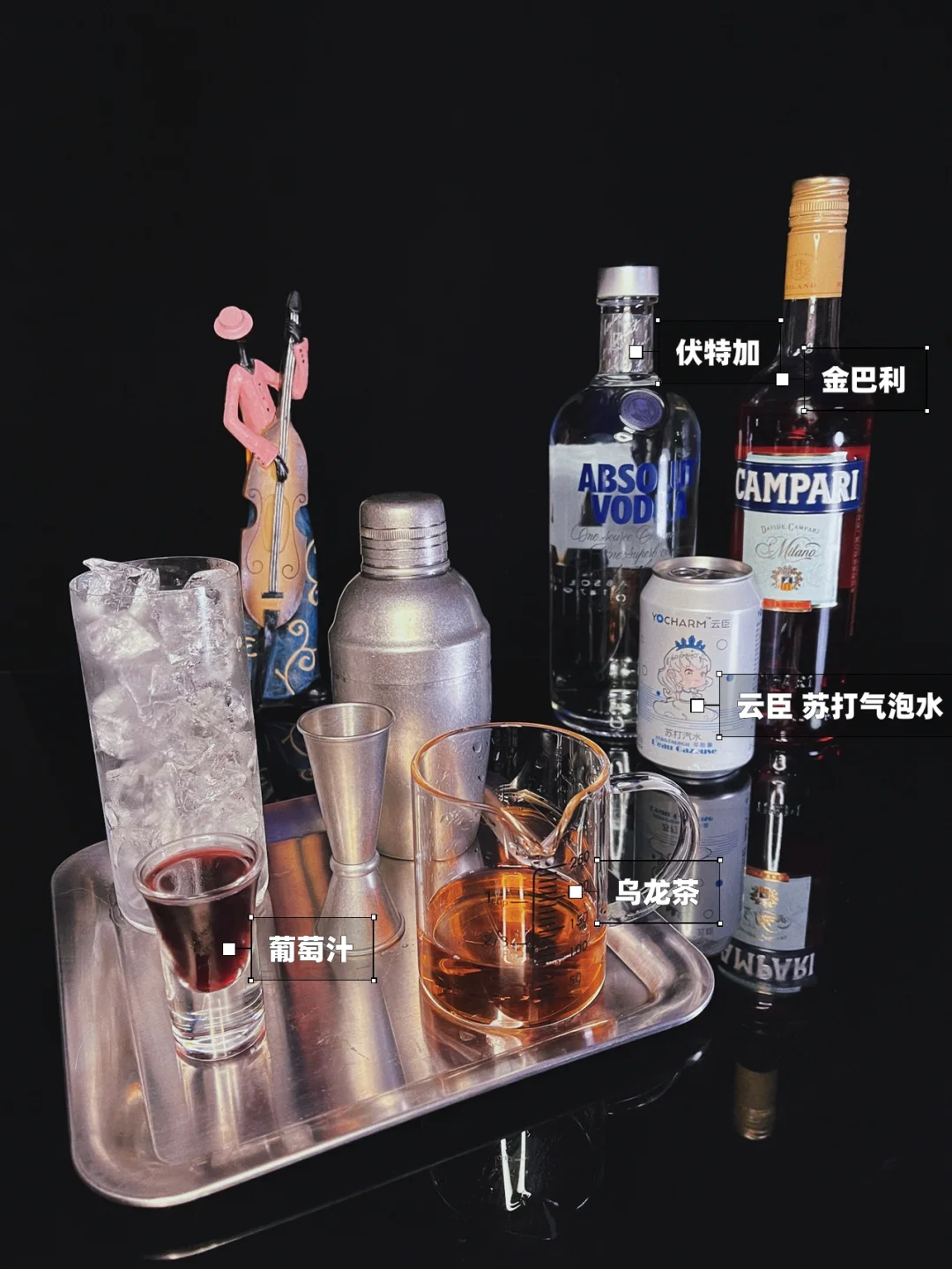 ….故事未终…. ✨✨✨✨ 乌龙茶与葡萄汁的搭配绝了![赞R][赞R][赞R][赞R] 气泡口感带有茶香与葡萄香气,金巴利的加入后感在有一丝苦感,层次感丰富...口味茶香清甜.~惊喜+1[萌萌哒R][萌萌哒R] 快来试一试!!![斜眼R][斜眼R] 🌟🌟🌟🌟 配方Formula 伏特加------------50毫升 乌龙茶------------50毫升 金巴利------------20毫升 葡萄汁------------20毫升 苏打气泡水-------补满