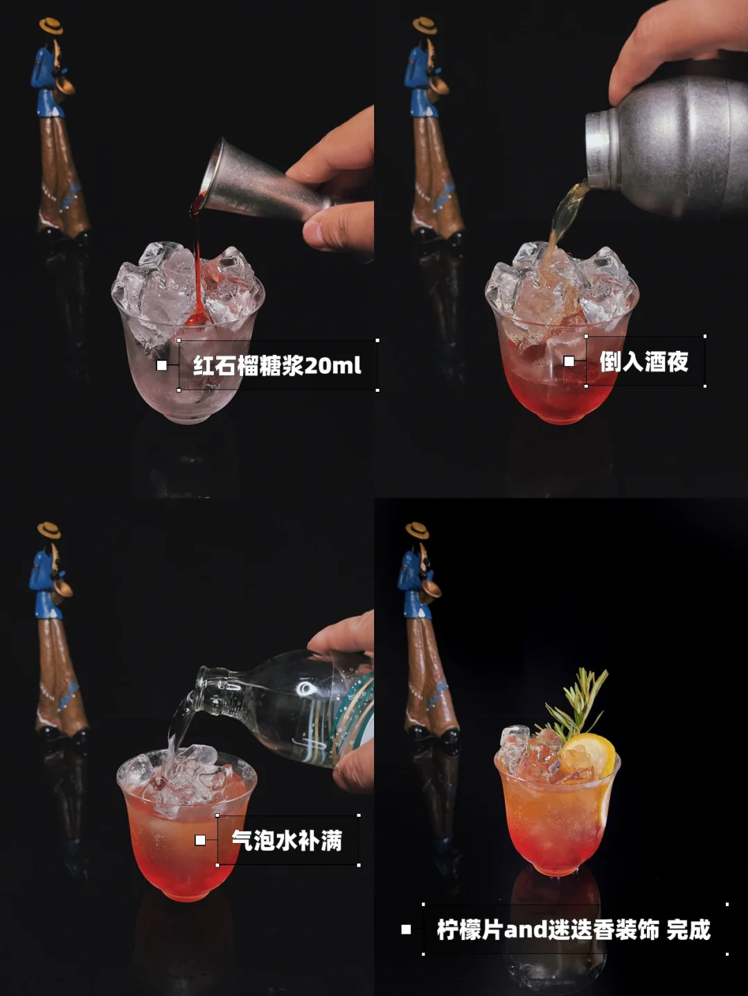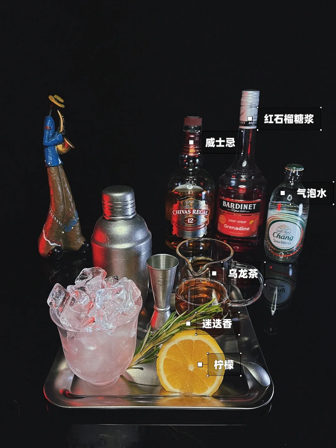 初夜 威士忌与柠檬、气泡的常规调配额外加入了乌龙茶与红石榴糖浆,酸甜口感,超好喝,好入口,酒精度不高,值得一试[赞R][赞R] 配方Formula 乌龙茶------------50毫升 红石榴糖浆--------20毫升 威士忌------------30毫升 气泡水------------补满量 迷迭香------------1根 柠檬--------------半颗 ✨