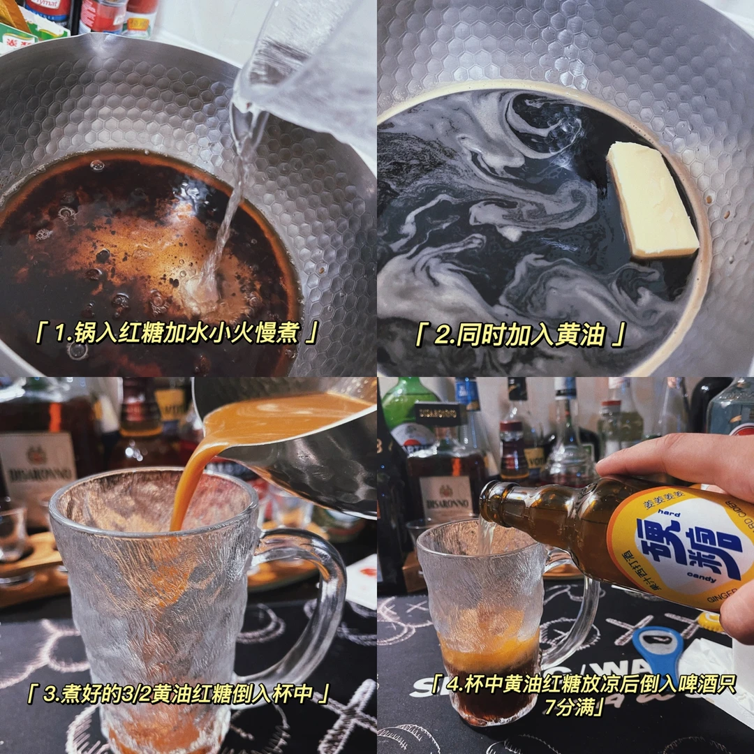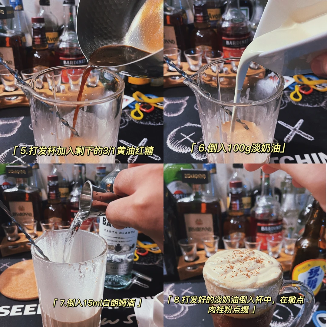 硬糖西打酒(姜姜姜姜)辛辣的姜味酒是黄油啤酒的关键[赞R],黄油红糖更加赋予了灵魂;淡奶油内加入白朗姆的打发更具风味,最后撒上肉桂粉口感又增加了层次感 别具一格。[赞R]