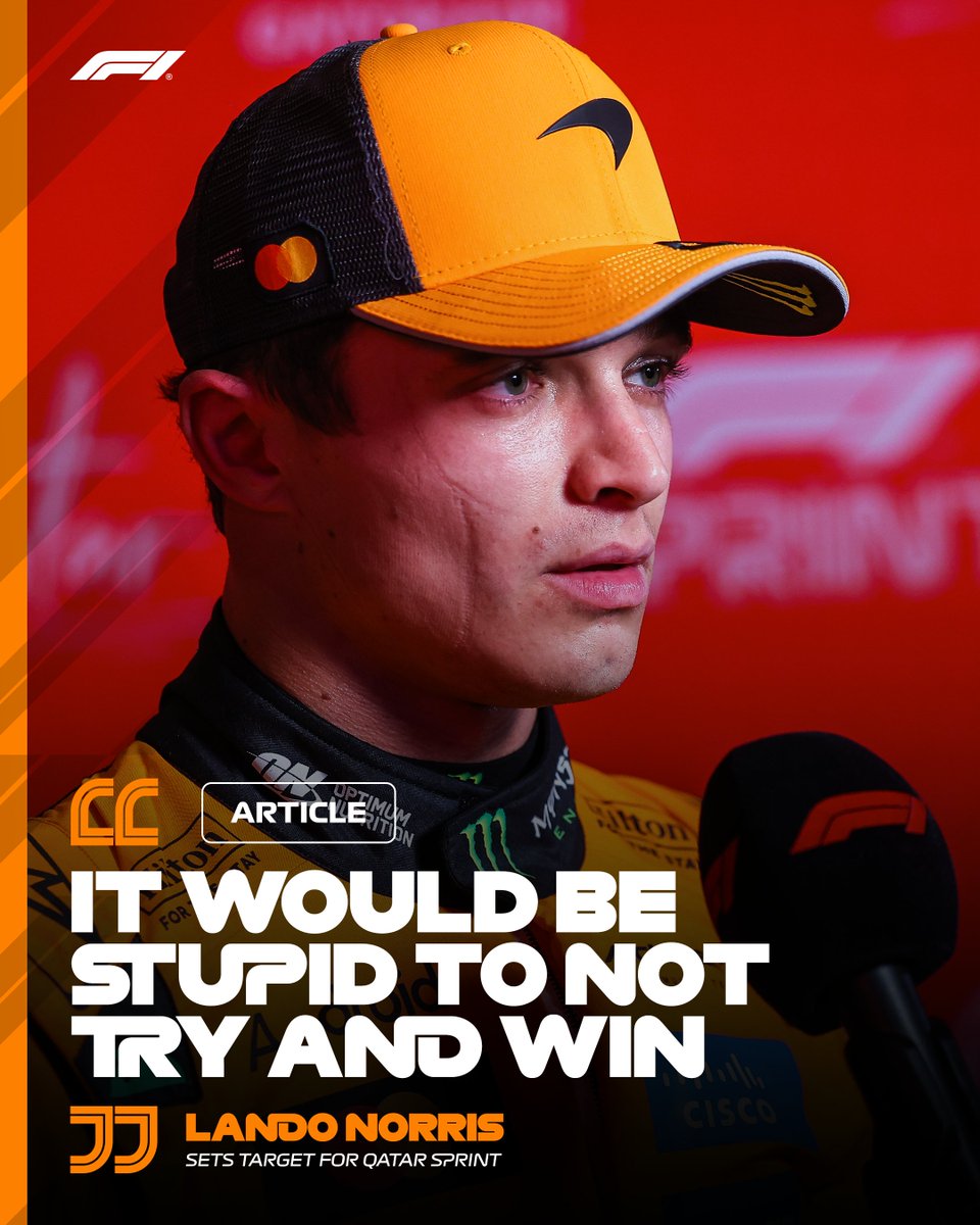 F1官方推特账号报道。兰多·诺里斯为今日卡塔尔大奖赛冲刺赛设定目标...迈凯伦车手在冲刺排位赛中因失误未能获得前排发车位#F1#QatarGP