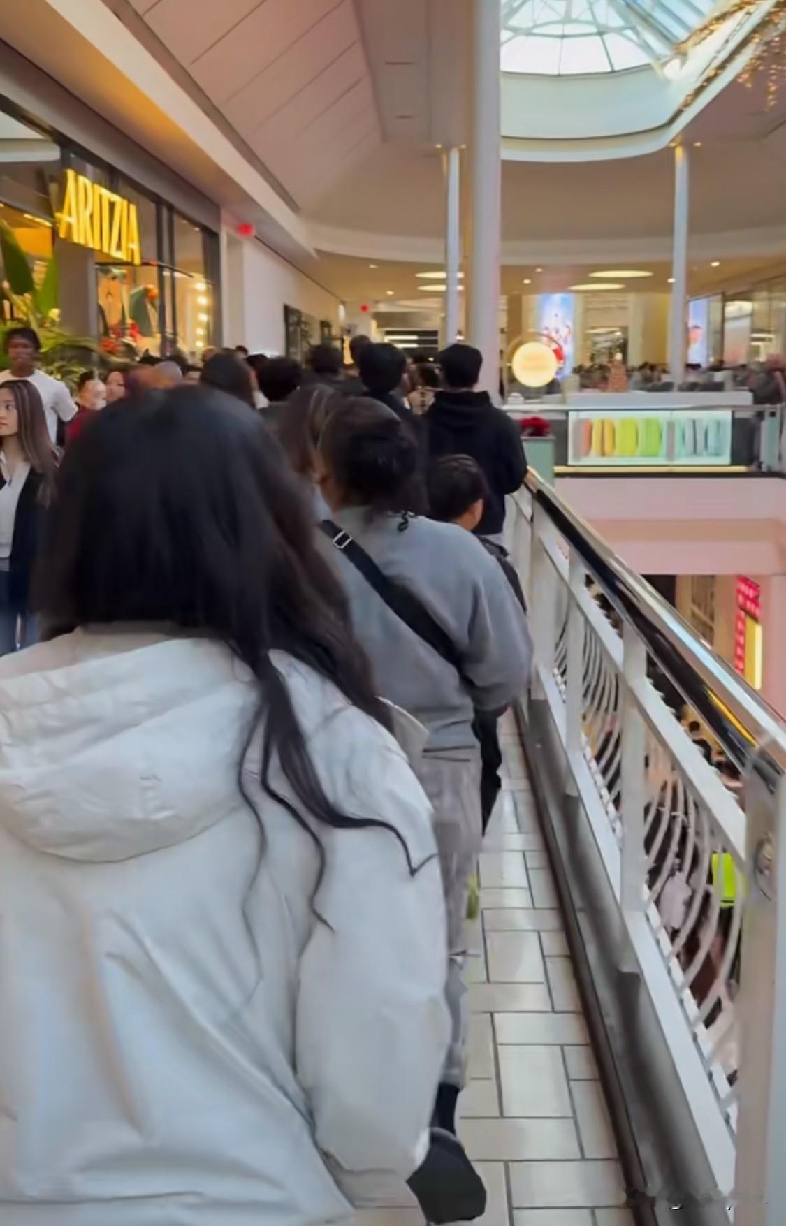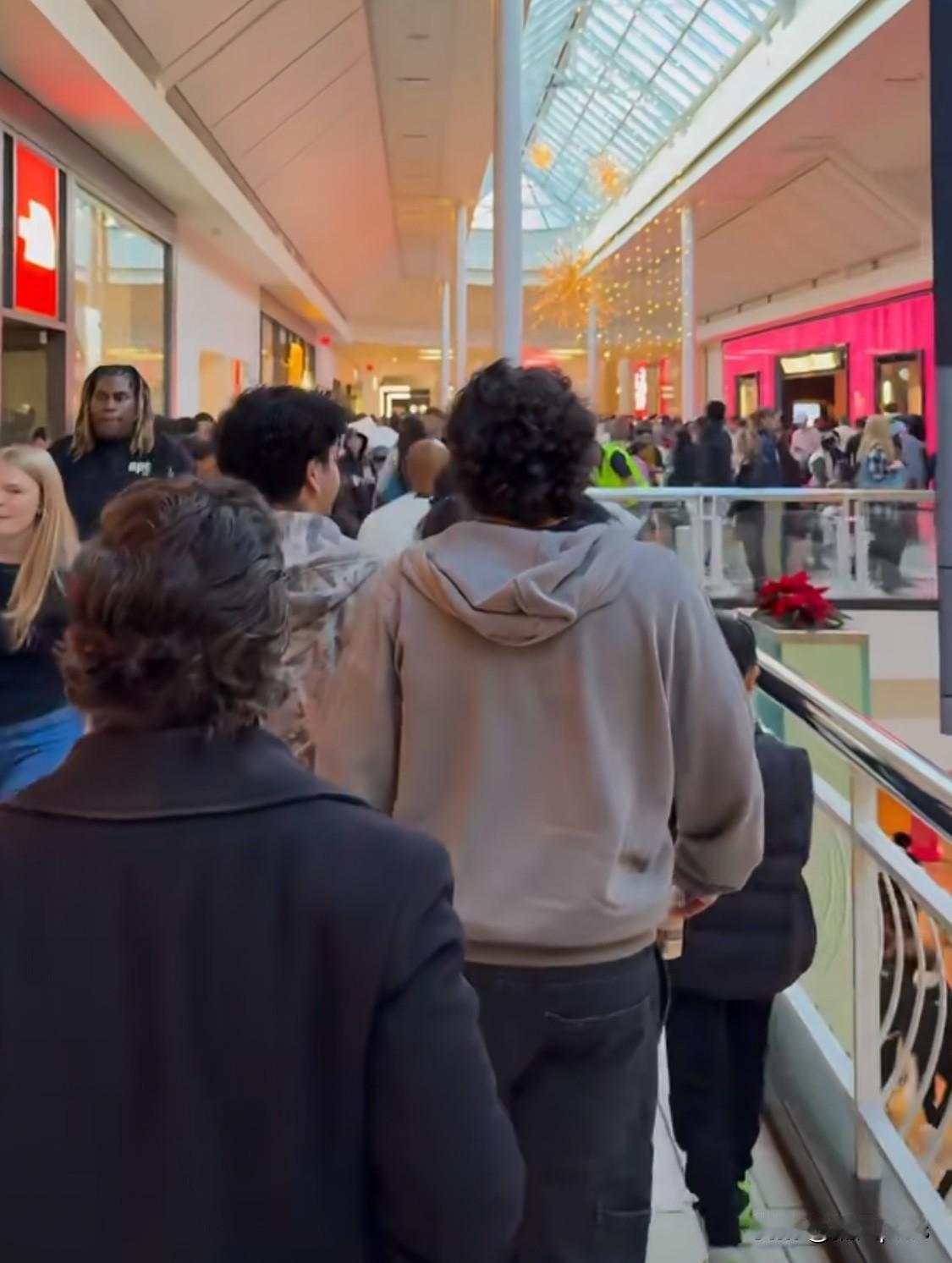 感恩节之后是黑色星期五,美国一处商场人满为患。商场过道上的人们摩肩接踵,看起来还挺热闹。 尽管亚马逊的网购已经很方便,但人们仍习惯于线下购物,因为线上、线下价格并没有差太多。 赶上黑色星期五,商场打折活动多,线下的一些打折商品比线上还要便宜。不过,美国电子商品确实还是贵一些。大疆的pocket 3在美国高达4000元人民币,看国内网站现在才2800元人民币。