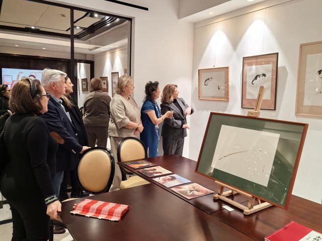 此次画展由摩纳哥驻华大使馆主办,展出了高醇芳几十幅书画精品。无论是细腻典雅的工笔山水、遒劲有力的书法,还是古韵传情的人物画、灵动可爱的小猫画,都引起摩纳哥观展嘉宾的浓厚兴趣。
