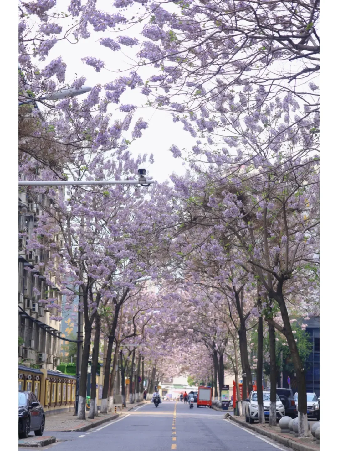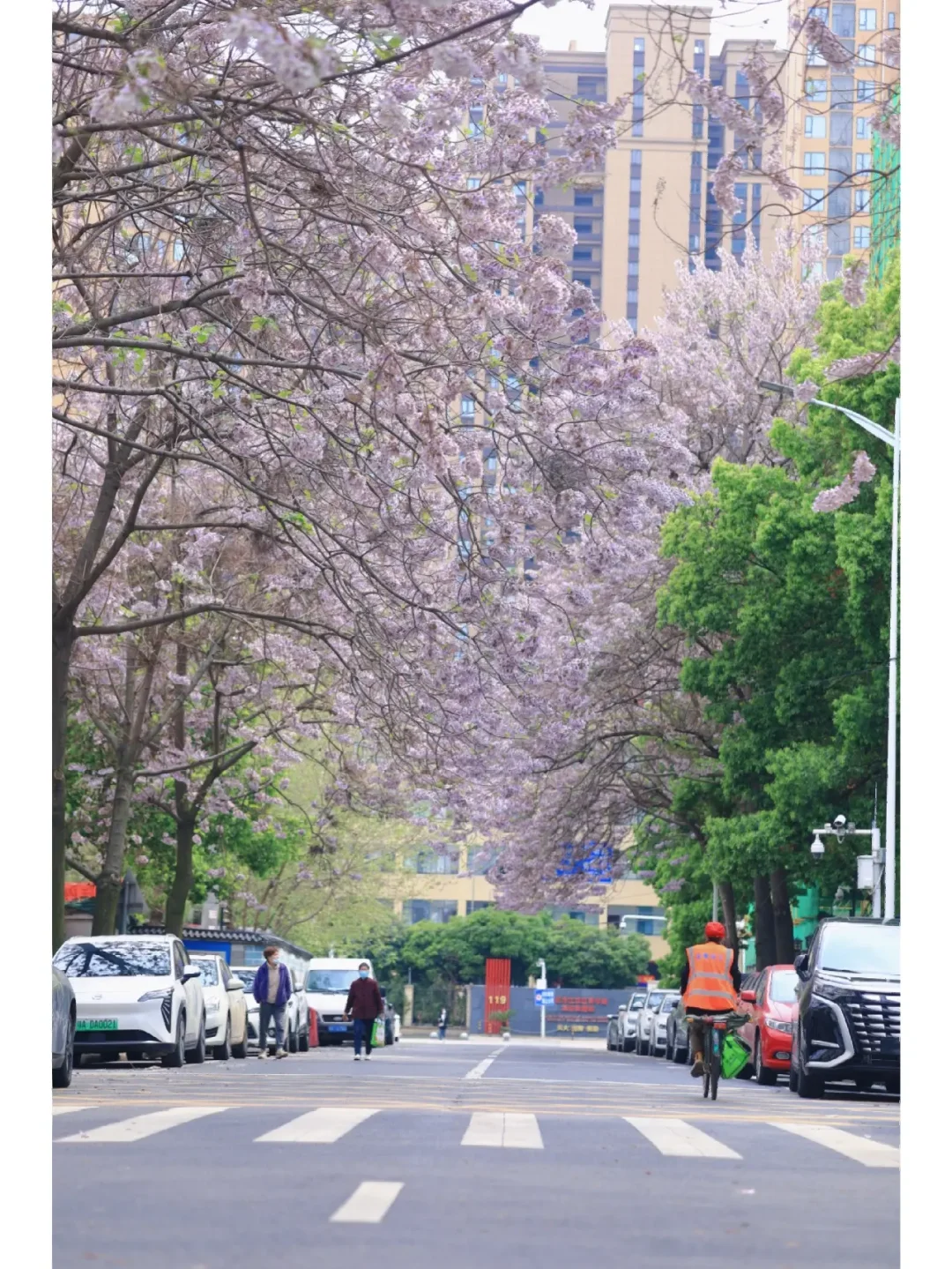 ✔️没想到武汉的春天还有一条这么浪漫的路,沿路两边都是紫色的泡桐花,开的非常密集好像拱形的通道