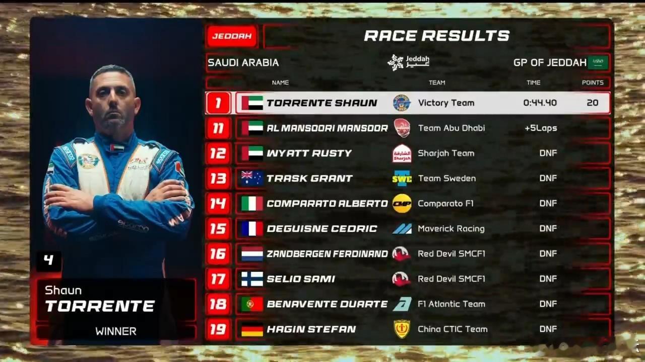 F1H2O 吉达大奖赛初版赛果:维多利队的老将肖恩·多仁特强势夺冠中国天荣F1H