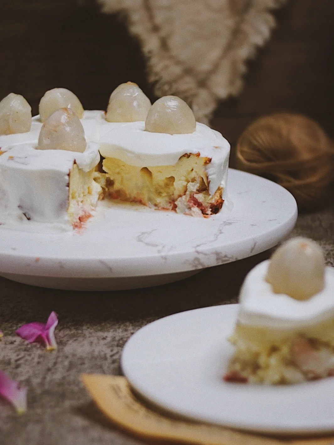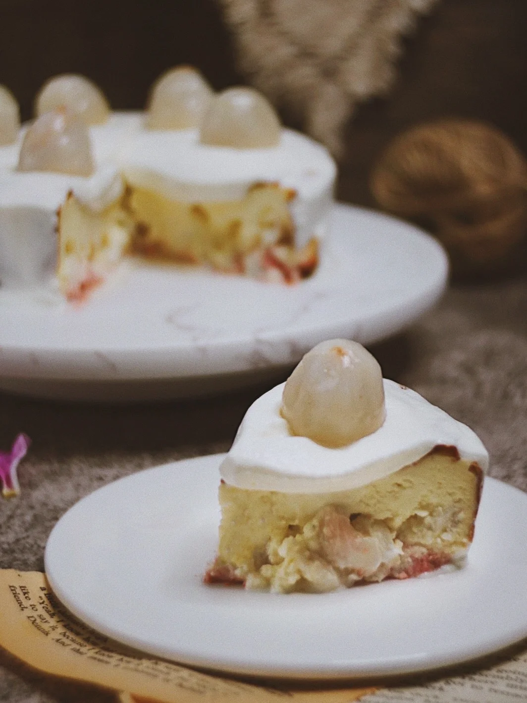 再不吃荔枝就下市啦📣每每这个时候,就会囿于厨房,把荔枝和甜品结合在一起。今天做的荔枝巴斯克,除了细腻的芝士,还有清新爽口的荔枝果肉。底部铺了现熬的樱桃果酱奶酪糊🍒甜丝丝的。谁吃谁迷糊