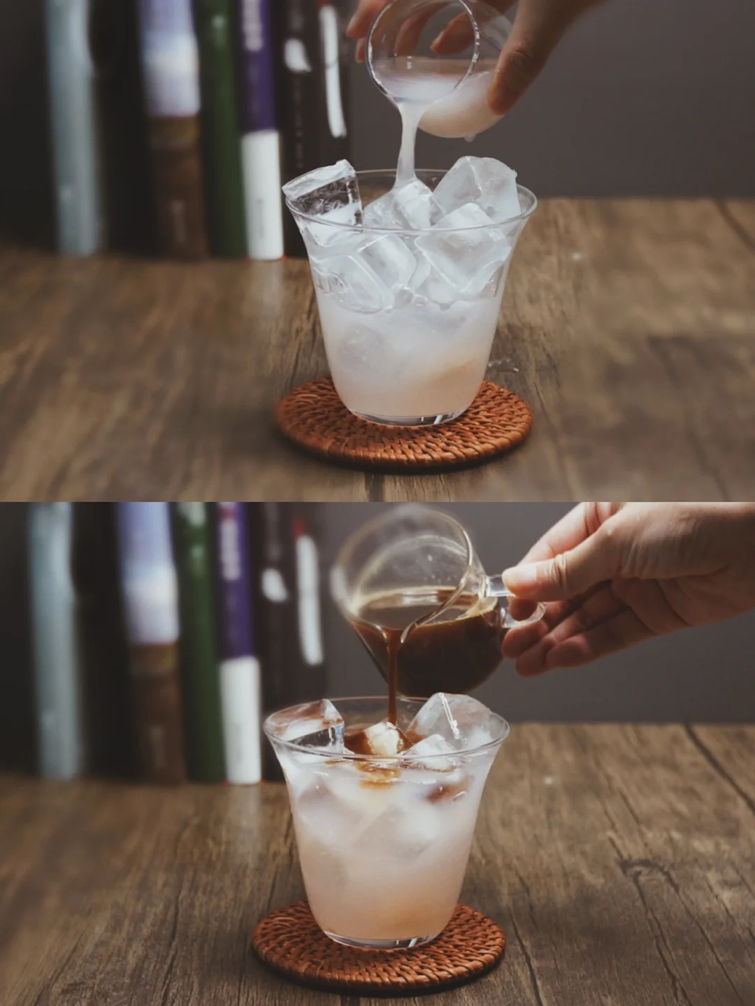 ⚠️山竹果肉与冰糖在一起熬煮,就会煮出好看的淡粉色;咖啡液可以是意式浓缩、手冲咖啡,不可以选择含糖的。不然就没有好看的分层啦