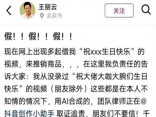 温峥嵘冲进直播间质问骗子,反被拉黑了。 她本人在直播间问“你是温峥嵘,那我是谁?”,结果自己被踢出去了,你说气不气人。这事发生在2025年11月2日,AI合成的她,还拉着AI刘涛、张柏芝一起卖护肤品。早在同年4月,她就为打假发愁,证明自己是自己太难了。 这事儿,这事儿真的离谱。70岁的老戏骨王丽云也遭了殃,2023年11月26日,她紧急辟谣,说自己从没录过什么生日祝福视频,更没卖过货,气得不行。 骗子图啥?就是钱。有人用这技术10分钟就骗走430万。之前还有假冒靳东的视频,专门骗中老年阿姨的钱,一骗一个准。 现在这技术,一键“偷脸”成本低得很,南京那个符某就用AI换脸搞了195万条个人信息。 以后看到明星直播带货,先去官方号瞅一眼,眼见不一定为实了。