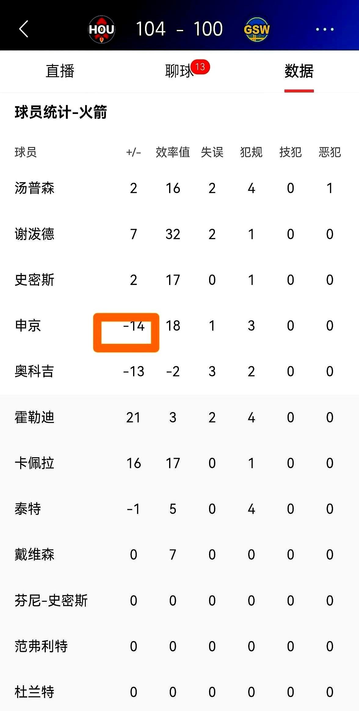 全队最低-14,这核心当得真憋屈。 11月26日火箭104比100逆转勇士,赢了球,申京却被喷惨了。-14的正负值全队垫底,好多人喊“送走他”。另一边,新秀谢泼德爆砍31分,下半场独得22分救主。 申京的-14咋来的?他18投7中效率确实不行。可勇士全场都在双人包夹他,防守压力全在他身上。就因为他被包夹。他赛季场均7.1次助攻,都是这么给队友喂出来的。 谢泼德就是那个抓住机会的人,下半场高效砍分,证明了火箭的眼光。现在再看那些“用申京换特纳”的言论,就挺搞笑。只看一项数据,真的会骗人。 申京是基石,谢泼德是新火力。火箭有厚度,需要耐心,不是一两场论英雄。