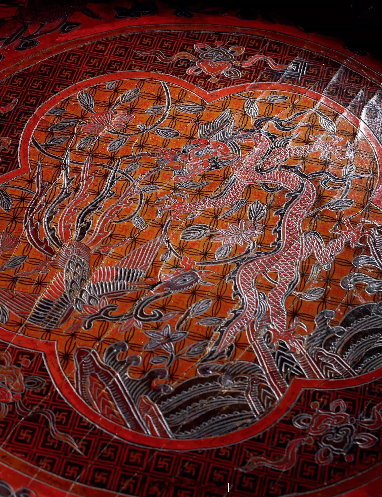髹饰录 | 明万历 雕填戗金龙凤纹盘漆盘造型端庄雅正,规整秀致,内外皆髹褐色漆为地,上作戗金彩漆工艺处理。外壁绘折枝花卉一周,内壁与之对称饰缠枝花卉;盘心内「卍」字锦地,正中花形开光中雕填彩漆戗金龙凤升腾,趾爪锋锐,富有张力,颇具动感,四周配以凌志绶带。整面纹样丰富华丽,繁而不乱,布局妥洽,足见功力。雕填漆为漆器制作工艺的一种,即在漆器上雕刻花纹,然后沿着花纹轮廓勾出阴文线,在勾出之后,于刻纹处填以彩漆。此类填漆有两种制作方式:一是填彩和漆面相平;二是雕填后花纹凹陷,不与漆面平,显出刀刻味,这两种工艺方式均盛行于明清两代。此盘底部髹褐漆,古旧断痕,近足处弧形刀刻填金「大明万历戊戌年制」楷书款,与清宫旧藏一件明嘉靖戗金彩漆龙凤纹菊瓣式盘内心所绘纹饰相似,典型的明代龙纹及款识,做工精湛,可资对比。备注:1.日本名古屋天野家族旧藏2.日本关西重要藏家旧藏尺寸:直径25.7cm来源:保利2025秋拍《醉花荫—海内外名藏漆器》