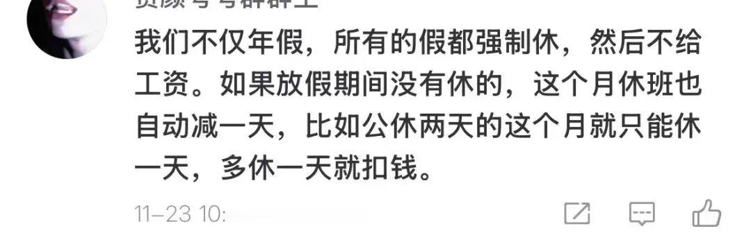 ◼还有网友指出,企业如此操作目的或是为了规避支付法定三倍工资,以压缩人力成本。