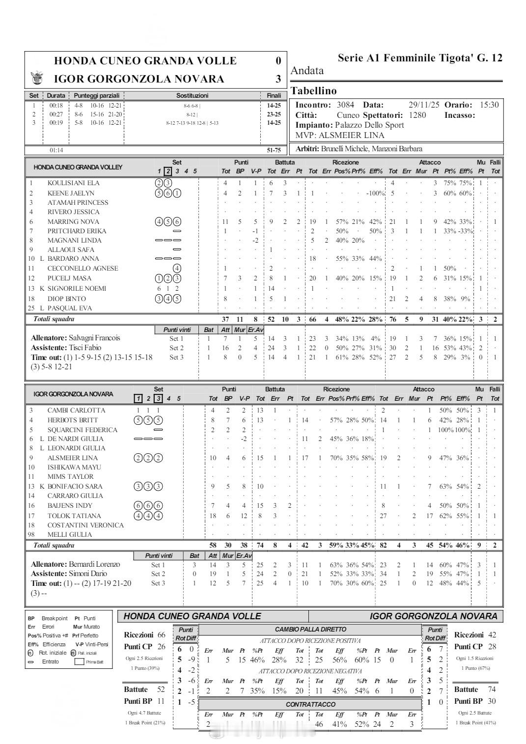 【意甲女排诺瓦拉3-0零封库内奥 托洛克18分】国际排坛战报速递 11月29日,意甲女排第12轮。诺瓦拉客场3-0(25-14/25-23/25-14)零封库内奥,9胜3负26分暂时升至联赛第三。托洛克18分、MVP阿尔斯迈尔10分,马林11分。