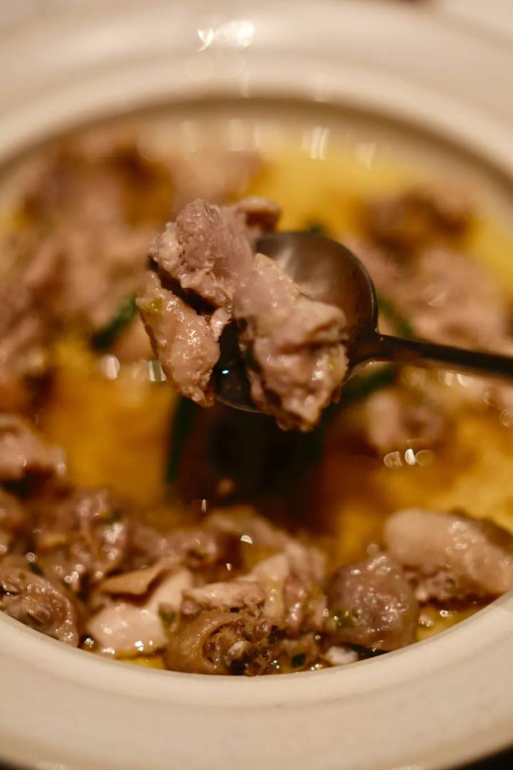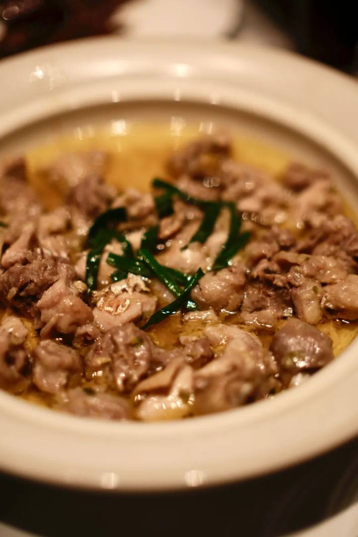腊鲞蒸鸡,用的是广东绿皇香鸡,养足300天的鸡,攒够了鸡味。妙笔在鲞,打碎之鲞,以其碎,则有无处不在之意,鲞味沁出更均匀。