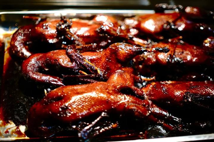 卤鸭儿,色泽勾人夺目。鸭子就是传统缸吊头,杭州人做板鸭卤鸭基本都用缸吊头。此鸭干香,肉质紧实而不柴硬,油润度在线。