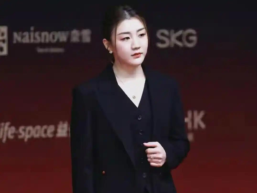 陈梦出席代言人影响力盛典红毯,穿黑色西服套装,妥妥大女主气场