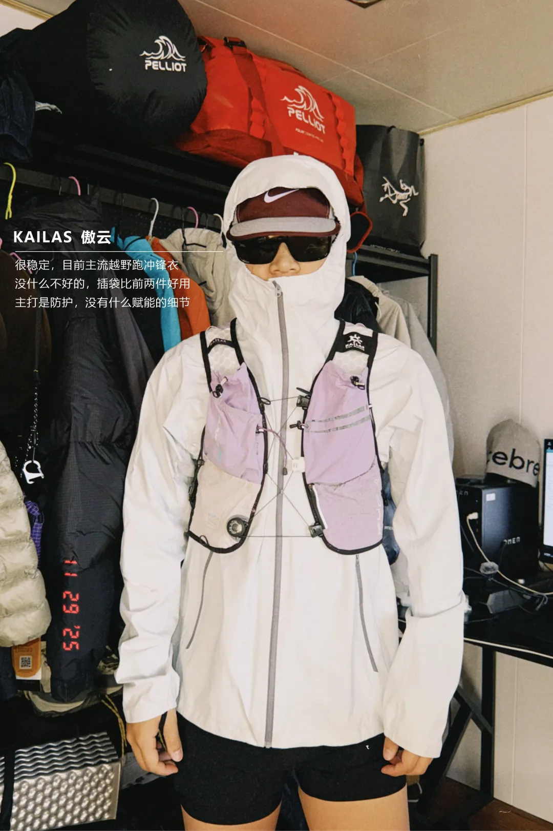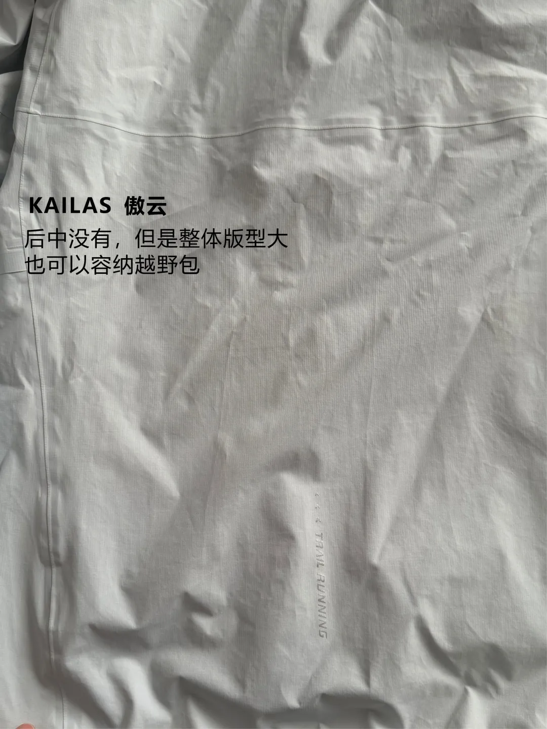 收纳:背包里才是冲锋衣的主战场,越野跑里冲锋衣 90% 的时间都在背包里。所以你穿在身上的体验只占一半