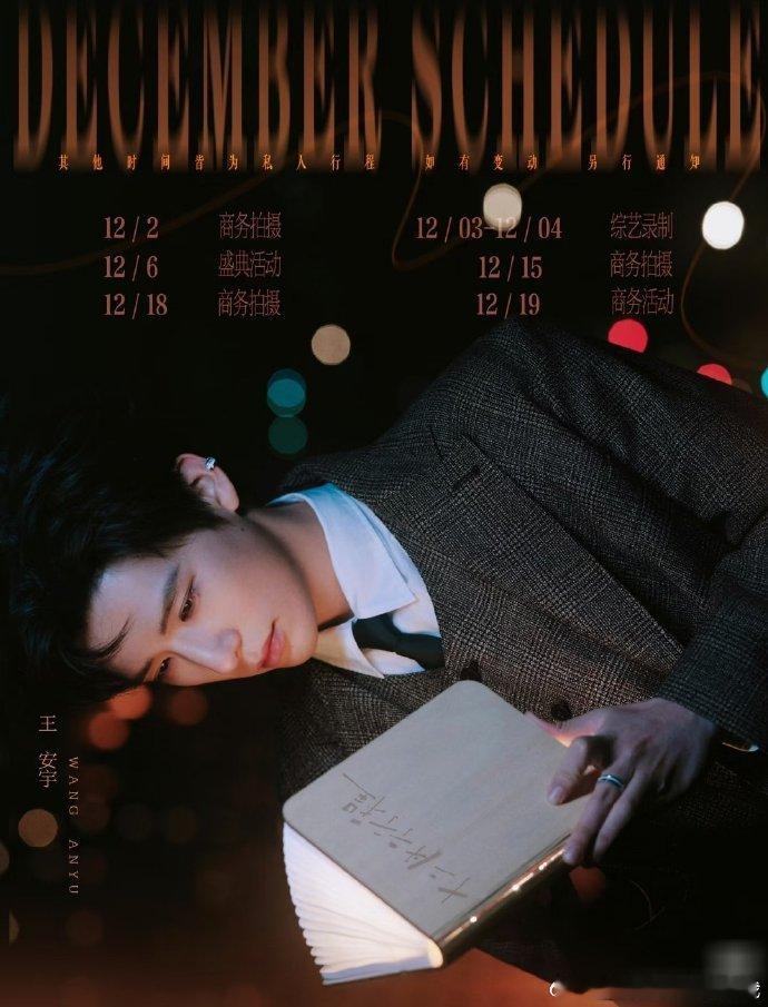 王安宇录制大侦探首案王安宇大侦探11首案 期待值爆棚!王安宇 12 月行程图有综艺录制,将参与《大侦探》11 首案,推理新体验来袭。