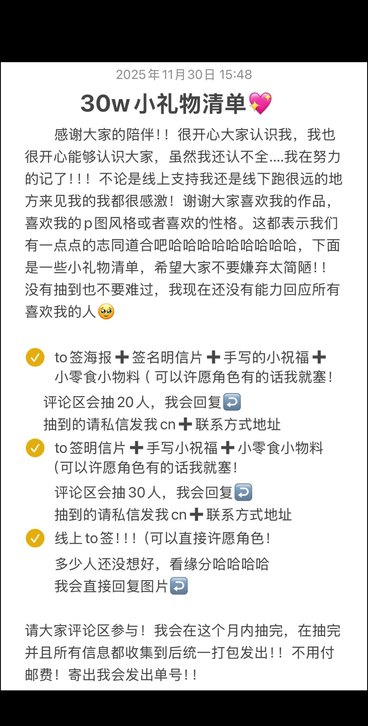 30w小礼物。感谢大家的陪伴!!很开心大家认识我,我也很开心能够认识大...