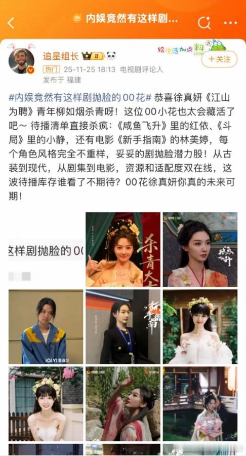 徐真妍《江山为聘》杀青登热搜,展现00后小花剧抛脸魅力
