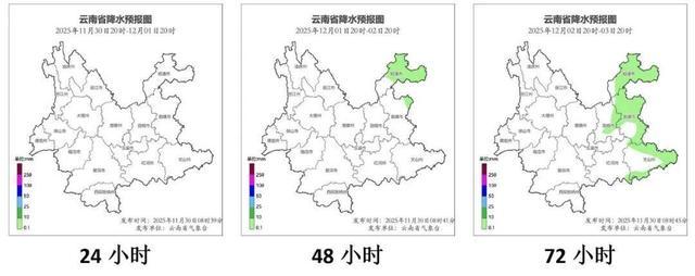 昭通市、曲靖市、昆明市东部、文山州东部和南部阴有小雨,其他地区多云间晴。