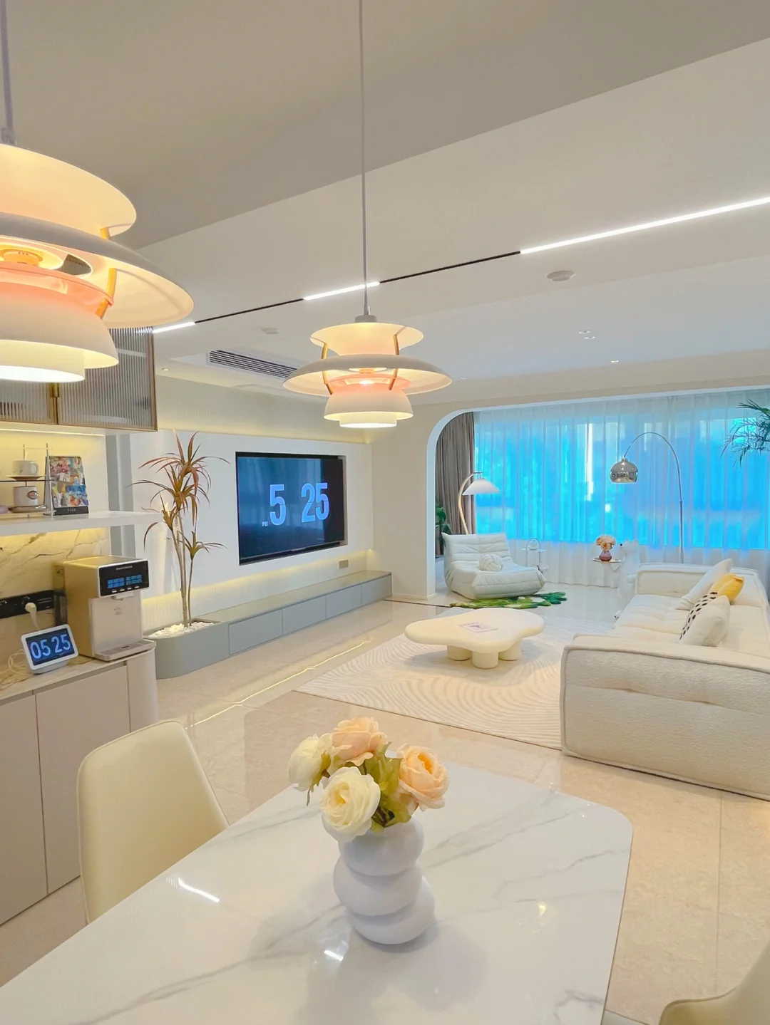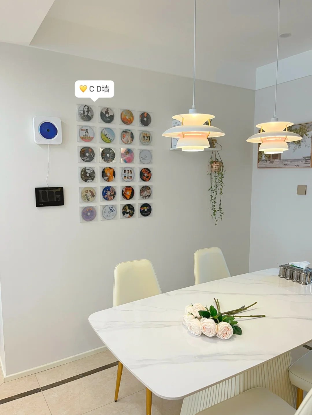 两个ph5吊灯正好搭配长餐桌,粉粉嫩嫩的好喜欢
