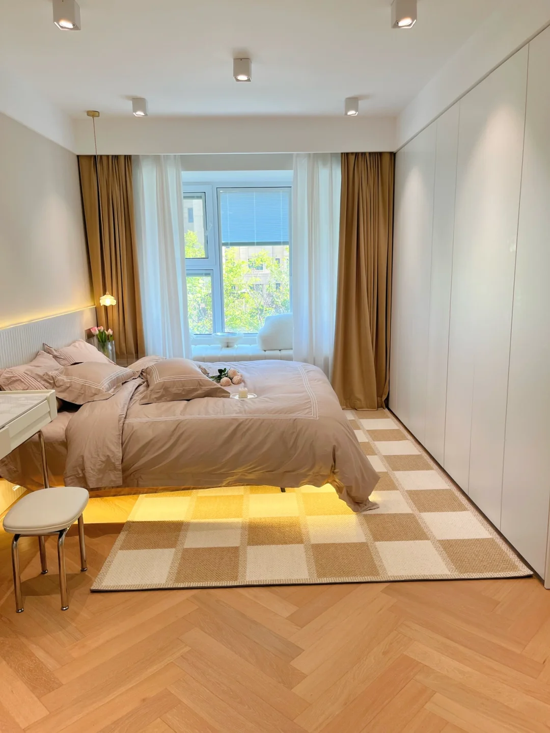 ✔️卧室太小怎么办→做床尾柜,选择无床头的床🌟