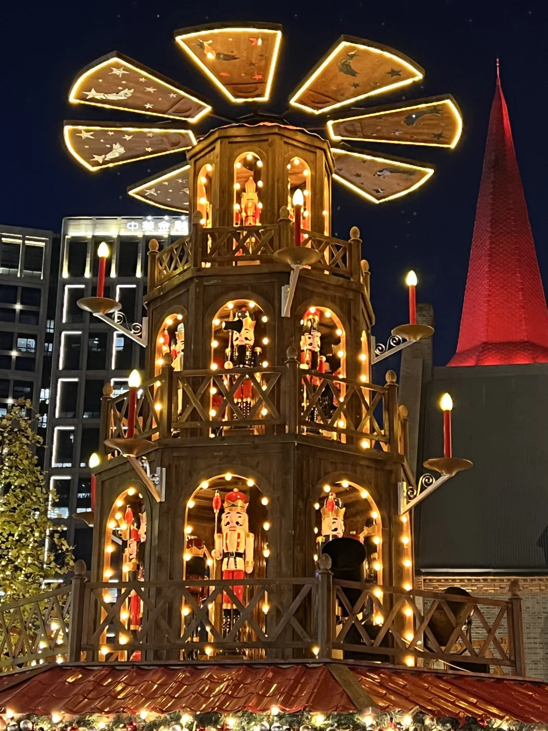 旁边还有圣诞金字塔 一层层的胡桃夹子木偶太可爱了!