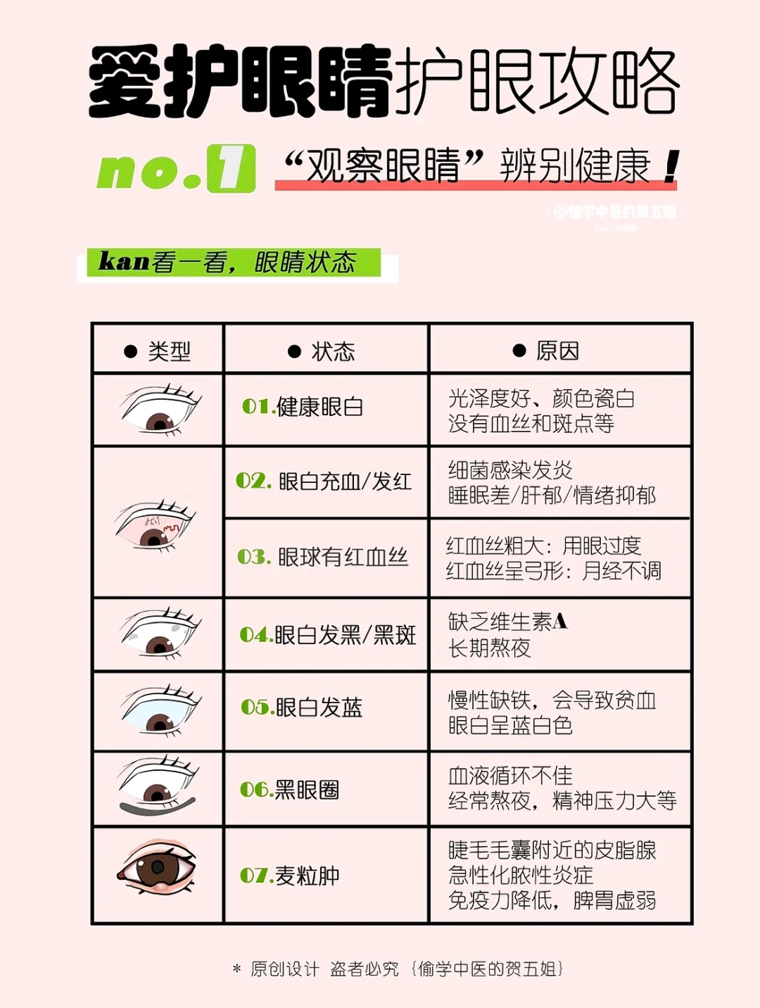 《黄帝内经》载:“五脏六腑之精气,皆上注于目而为之精。”眼睛可反应各个脏腑精气的盛衰,观察眼睛状态,可辩证健康~