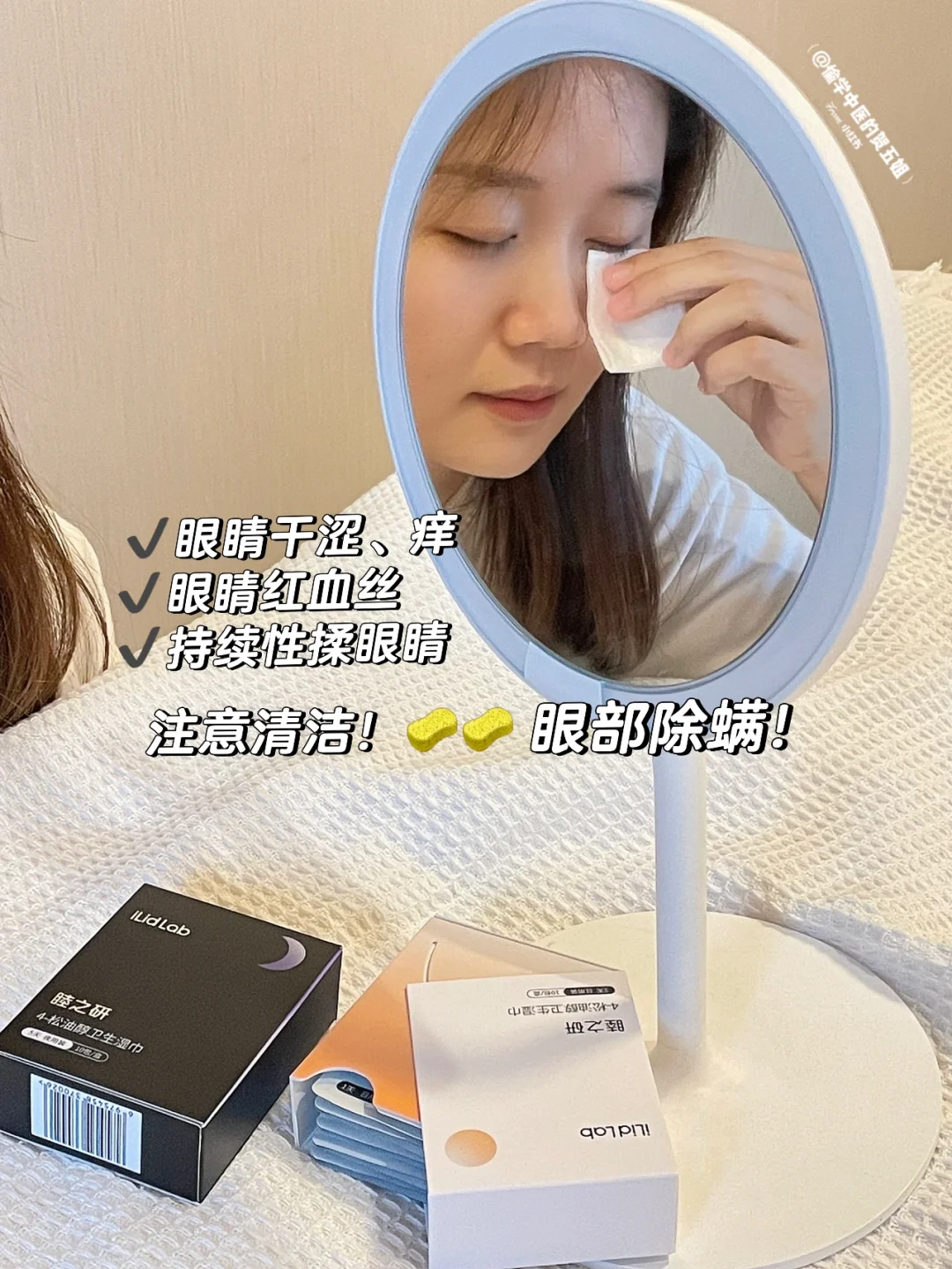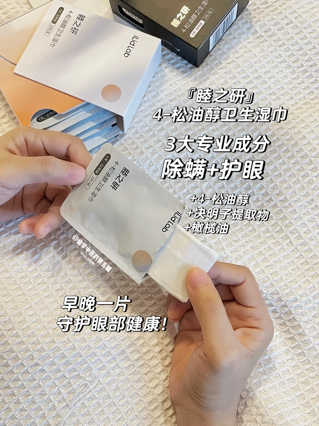 安利一款睦之研眼部湿巾,它添加了4-松油醇、决明子提取物、橄榄油~3大成分配合,“清洁+滋养”眼睛能力很棒[赞R][赞R]它分日夜装+左右眼装,细节满分💯💯早晨上妆前来一片温和❌🦠,晚上卸妆后来一片,高效除螨[黄金薯R][黄金薯R]做好眼部眼部清洁,双眼清新又明亮哦~