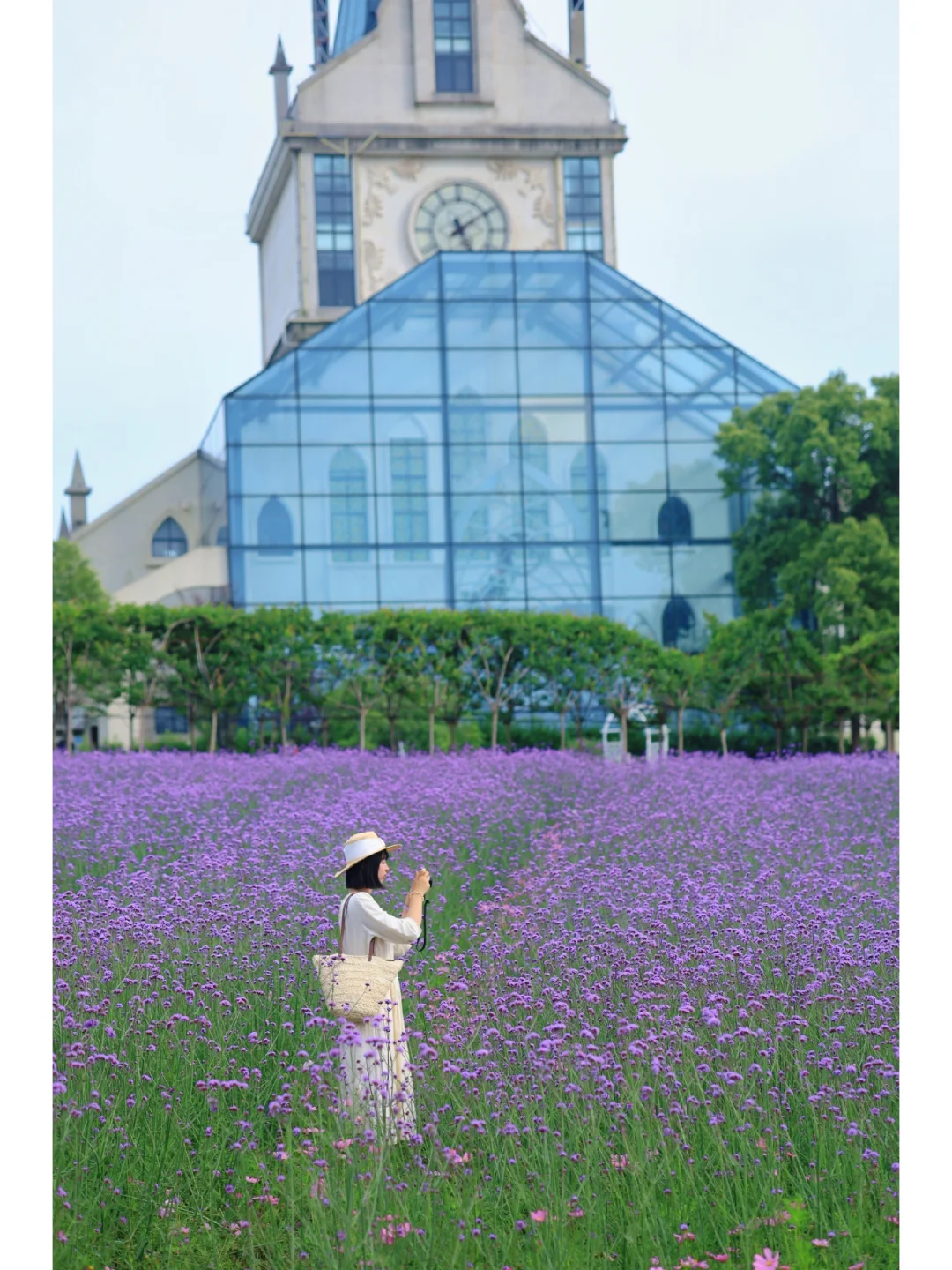 ✔️百亩紫色马鞭草花海盛开下来,与欧式教堂搭配好像走进了童话世界🏰还有一颗充满电影感的大树🌳怎么拍都出片