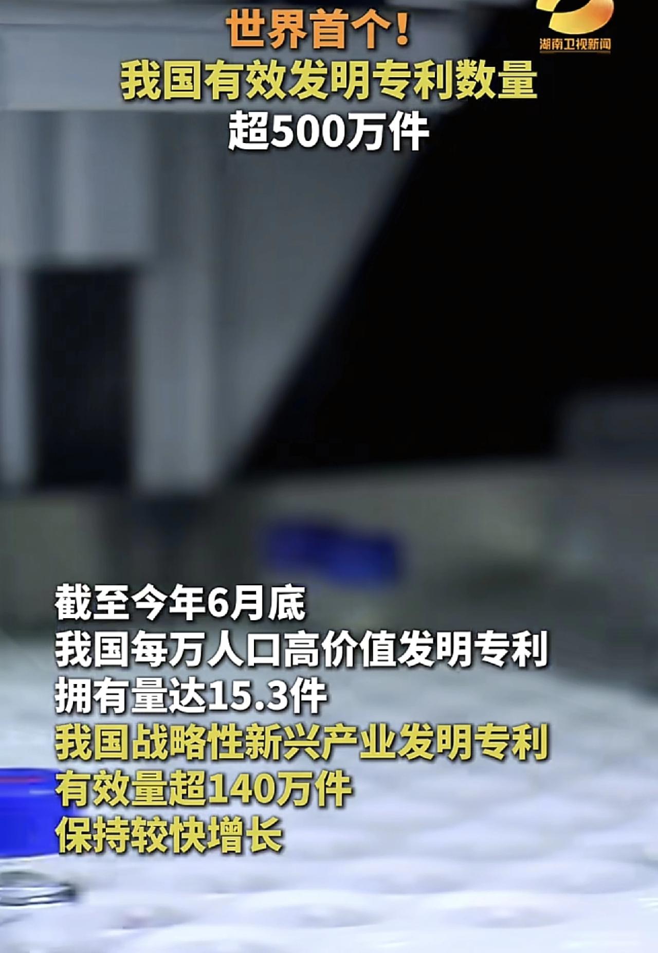 近日,一则振奋人心的消息从国家知识产权局传来:我国国内有效发明专利数量突破500万件,成为世界首个达成这一壮举的国家!这一里程碑式的成就,如同一颗耀眼的星辰,照亮了中国科技创新的前行道路。 500万件有效发明专利,这可不是一个简单的数字。它背后,是中国无数科研人员夜以继日的辛勤付出,是企业不断加大研发投入的坚定决心,更是国家对科技创新高度重视的生动体现。 从高铁、5G通信到新能源汽车、量子计算,我国在众多关键领域取得了一系列重大突破。这些发明专利,就像是一把把钥匙,打开了科技创新的大门,让中国在全球科技竞争中占据了一席之地。 以华为为例,作为全球领先的通信技术企业,华为拥有大量的5G专利。这些专利不仅让华为在5G领域处于领先地位,也为全球5G网络的建设和发展做出了重要贡献。同样,比亚迪在新能源汽车领域的专利布局,也让其成为了全球新能源汽车市场的佼佼者。 此外,政府还积极推动产学研合作,促进科技成果转化。通过建立产学研合作平台,加强企业与高校、科研机构的合作,实现了科技资源的共享和优化配置,加速了科技成果的转化和应用。 我国国内有效发明专利数量突破500万件,也在国际上引起了广泛关注。这一成就彰显了中国在科技创新领域的强大实力,提升了中国在全球科技舞台的话语权。