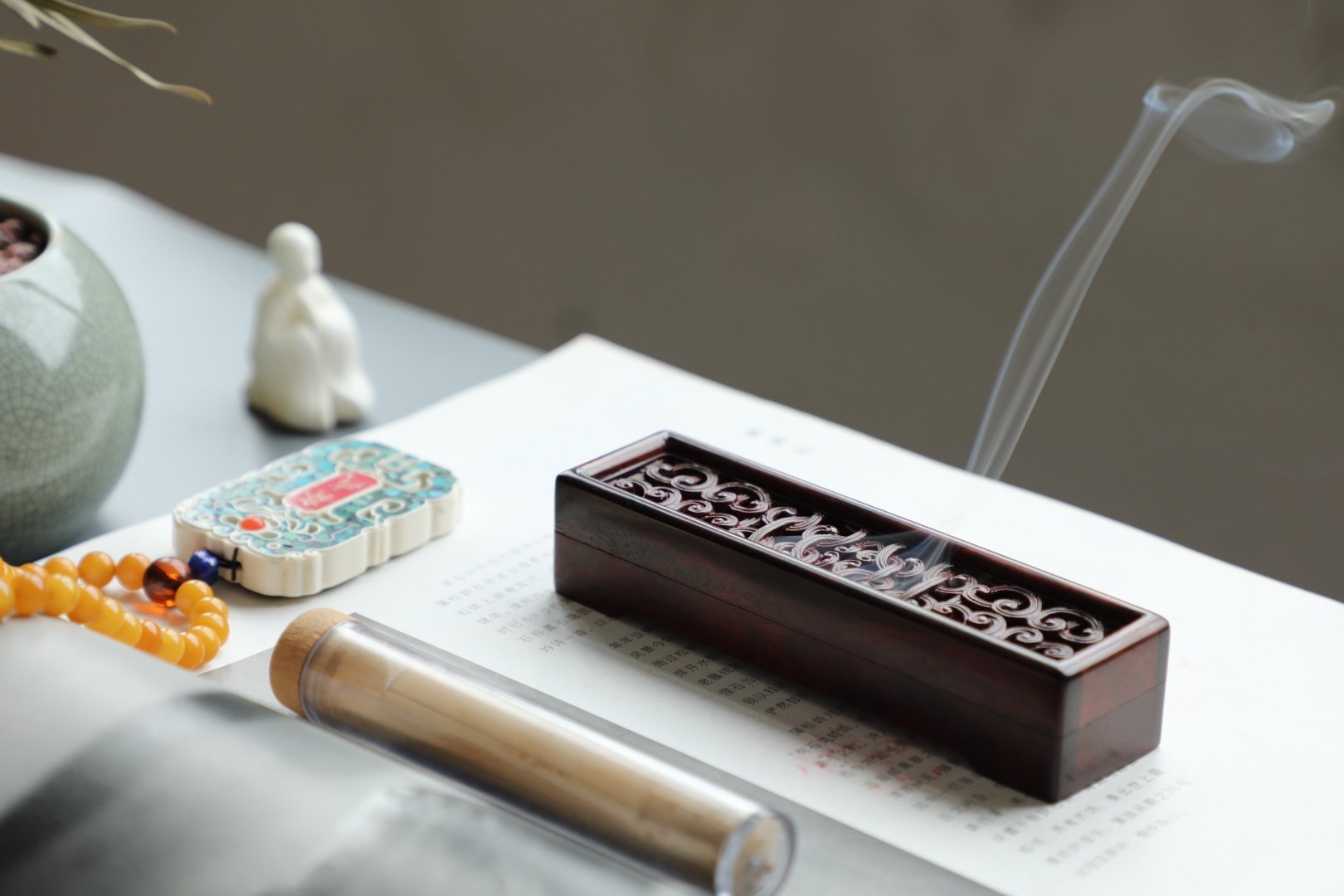 如意|线香盒|小叶紫檀印度小叶紫檀拆房老料榫卯结构制作,焚香的妙处在于无形中调动
