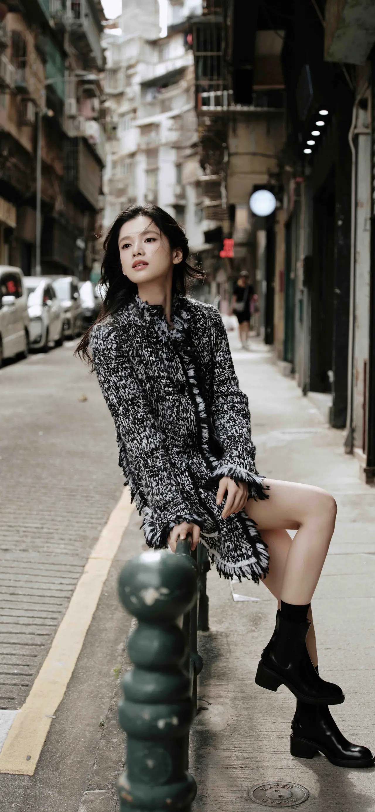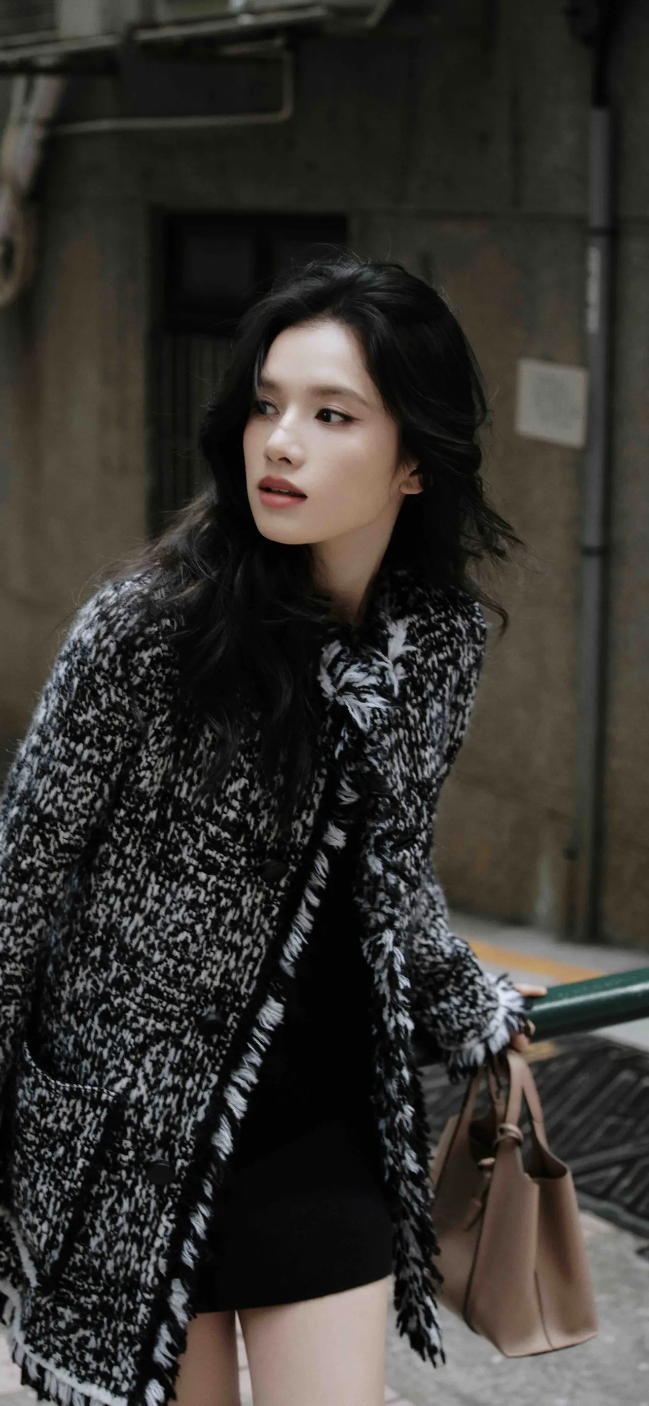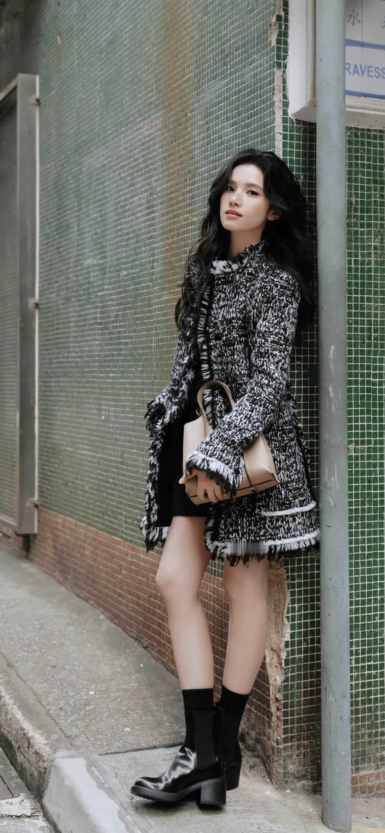 都市街头风穿搭,黑白撞色外套,帅气十足! (张婧仪)