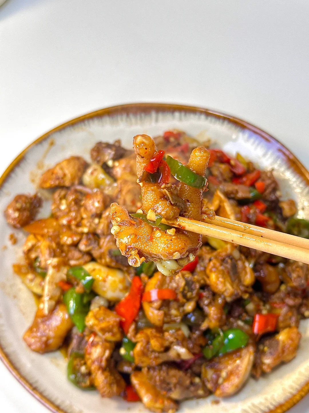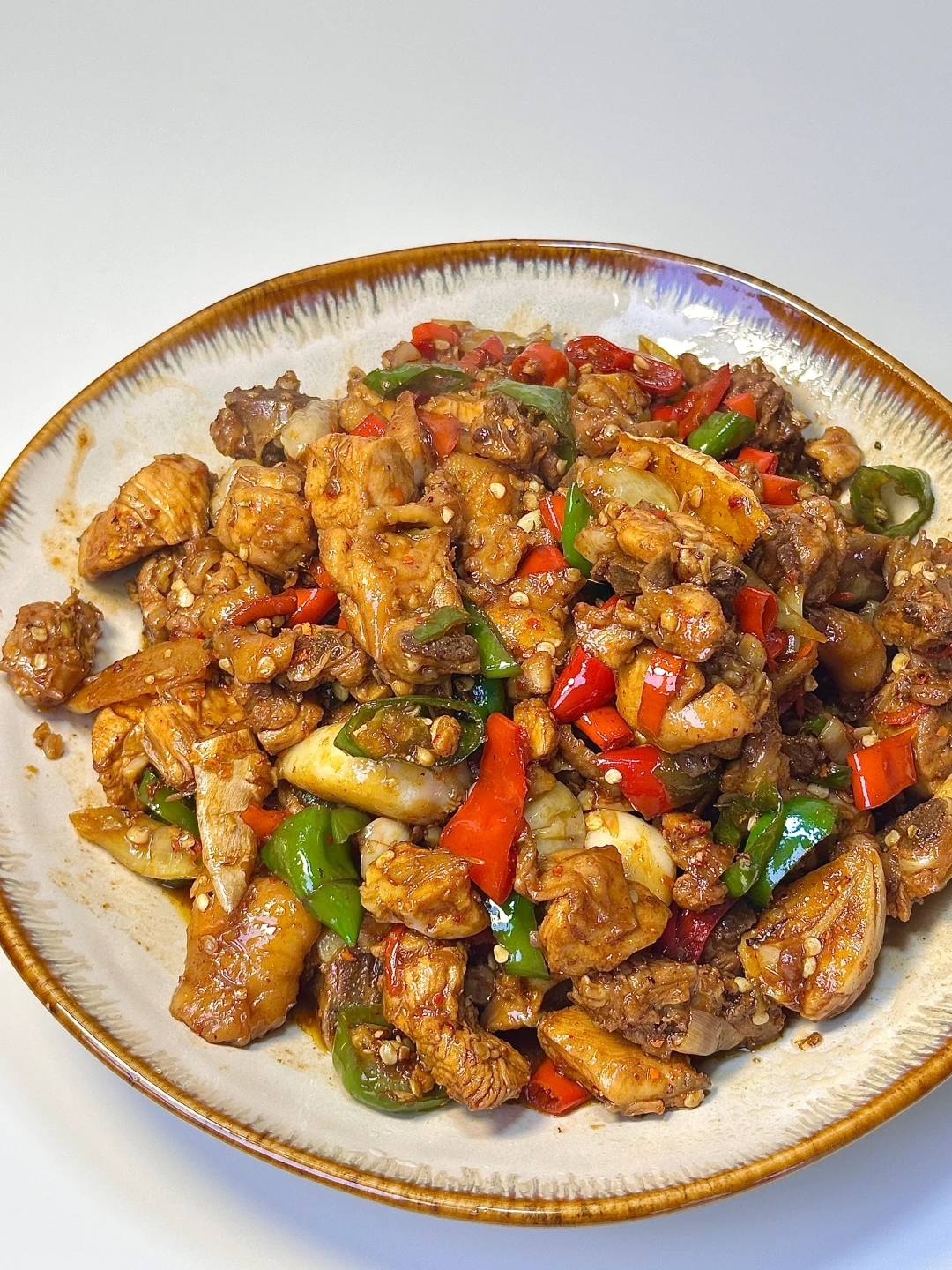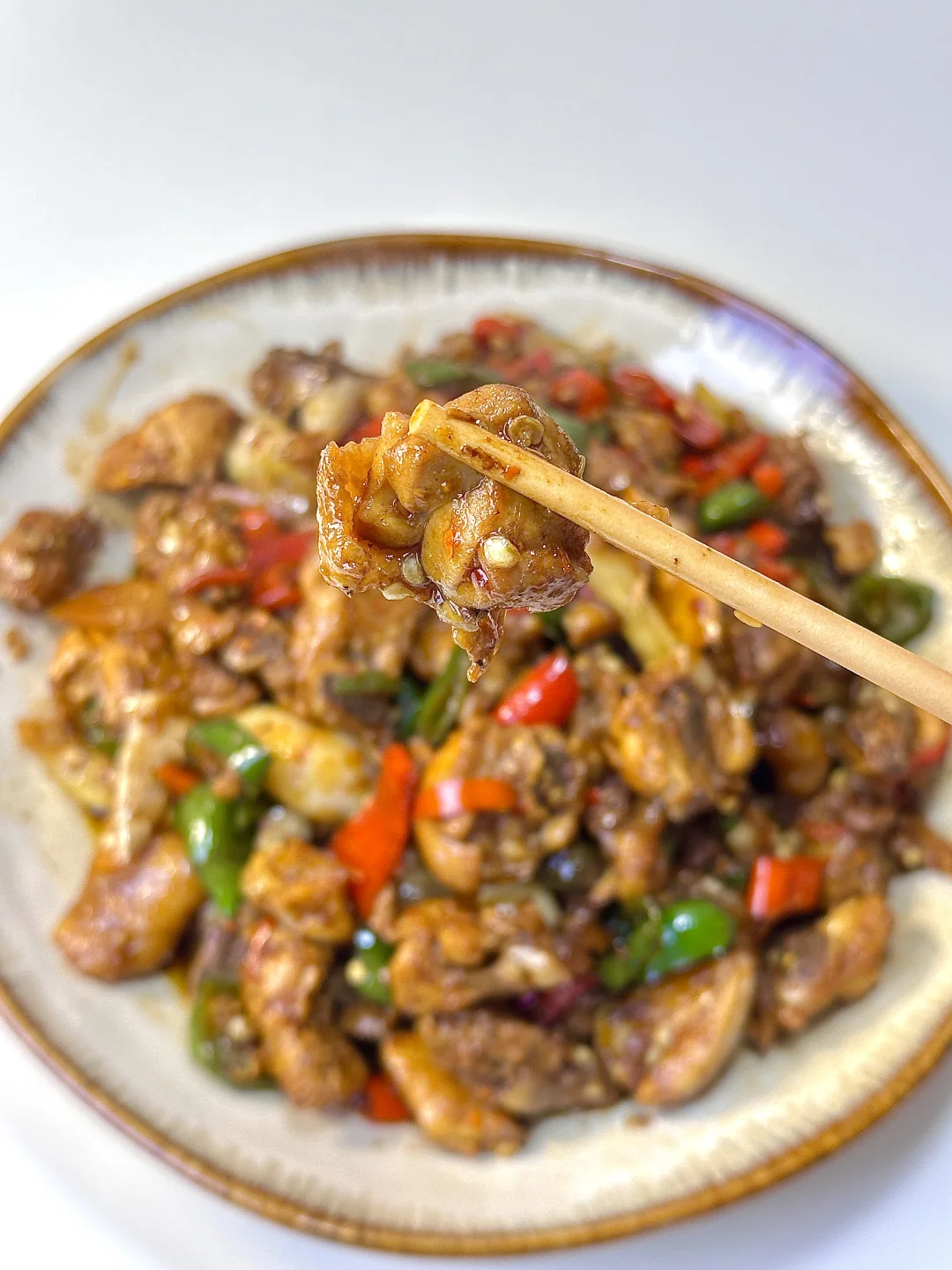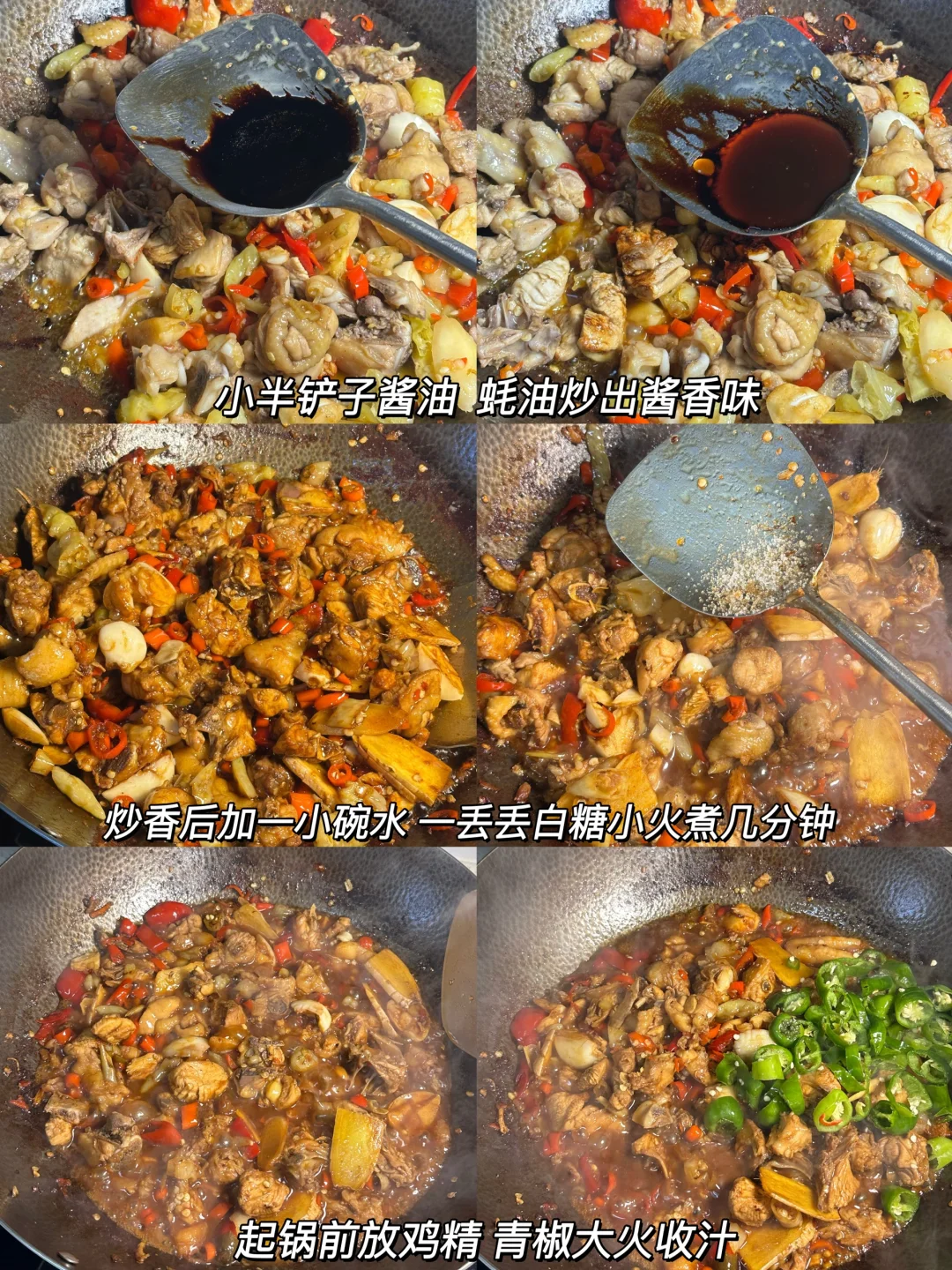 泡椒小炒鸡 香辣开胃 🤤你能炫几碗🥣 舒服的一餐[大笑R]家里的饭菜最好吃 ✨食材:半只三黄鸡 姜 蒜 小米椒 青椒 泡三宝泡椒 1️⃣:把所有食材洗净切好备用。锅里倒油烧热倒入沥干水份的鸡块翻炒几下 沿着锅边来一丢白酒 一小勺十三香粉翻炒到油变清澈(炒干水分才不腥)把炒好的鸡推到一边 下姜蒜 小米椒 泡椒炒几下。 2️⃣:调味加一铲半生抽 小半铲酱油 蚝油炒两分钟炒出酱香味。加入一小碗水加一丢丢白糖小火煮五分钟 起锅前加鸡精 青椒转大火翻炒到青椒断生。 好好吃饭呀🖖🏻