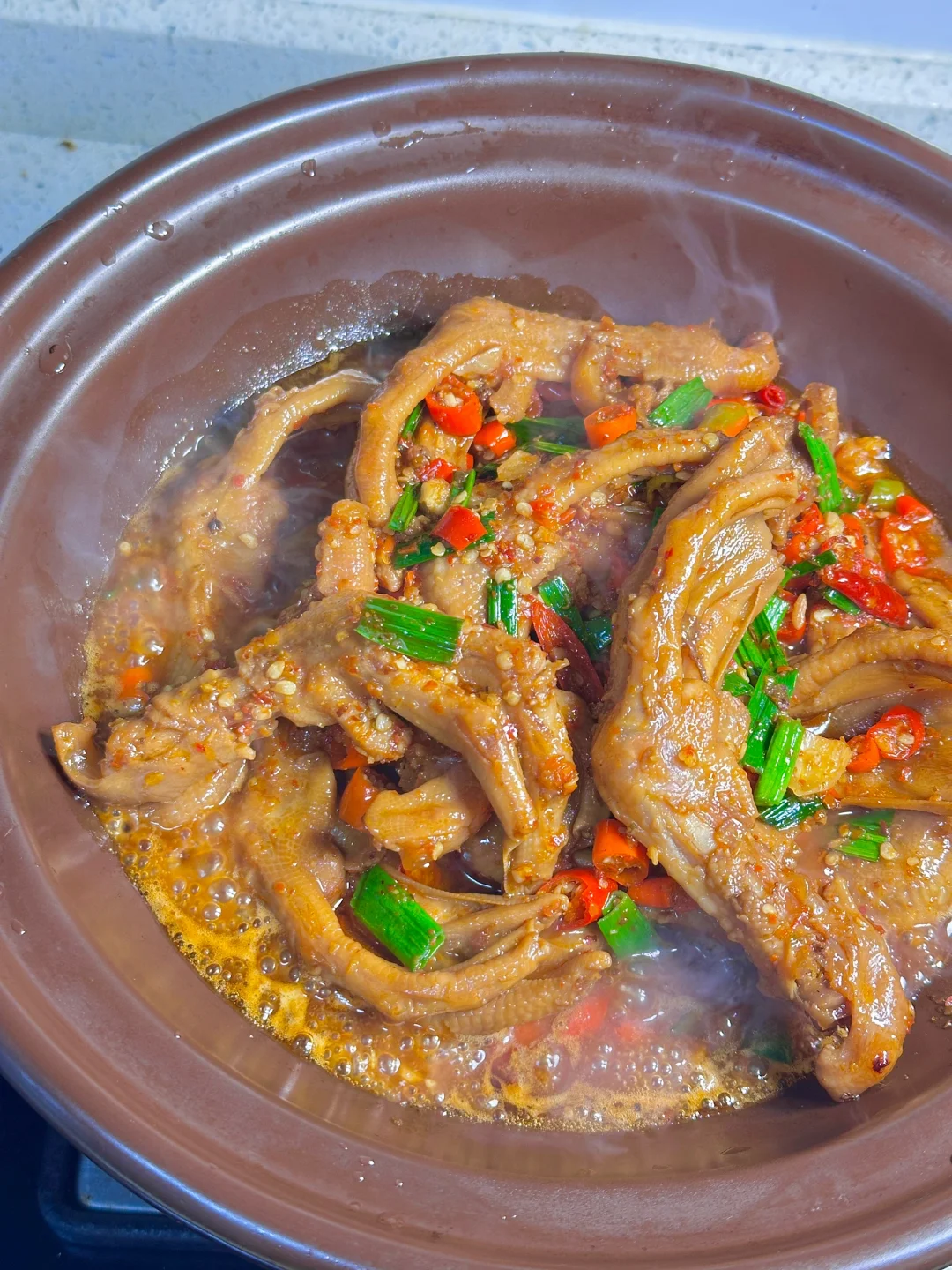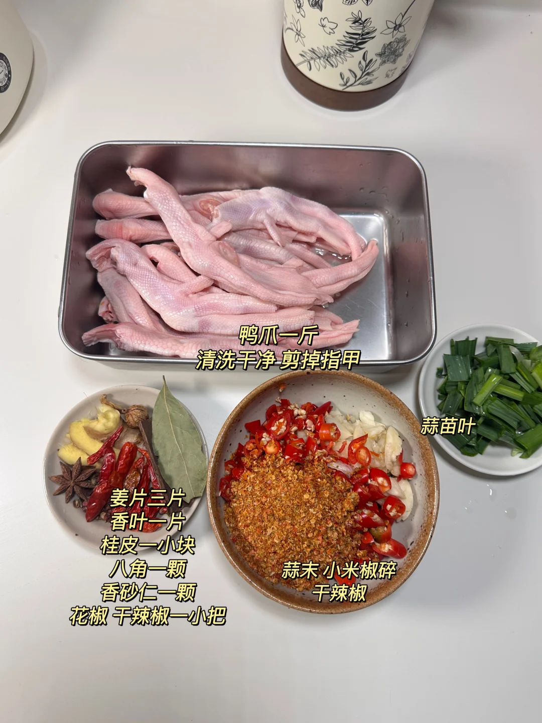 ✨食材:鸭爪一斤 姜 蒜 小米椒 辣椒粉 蒜苗叶