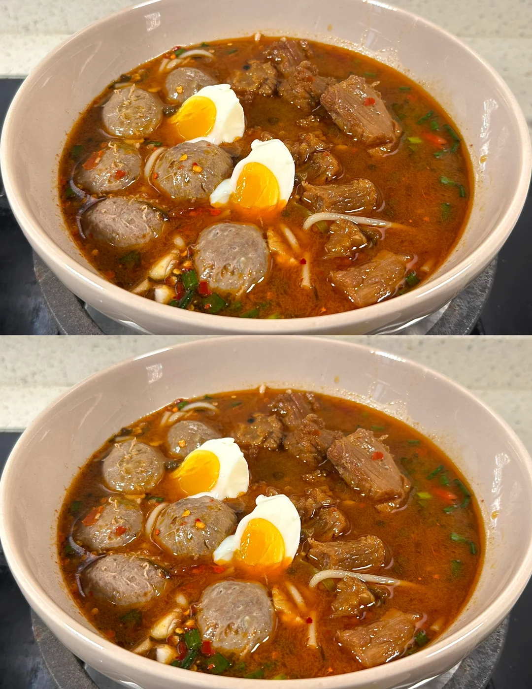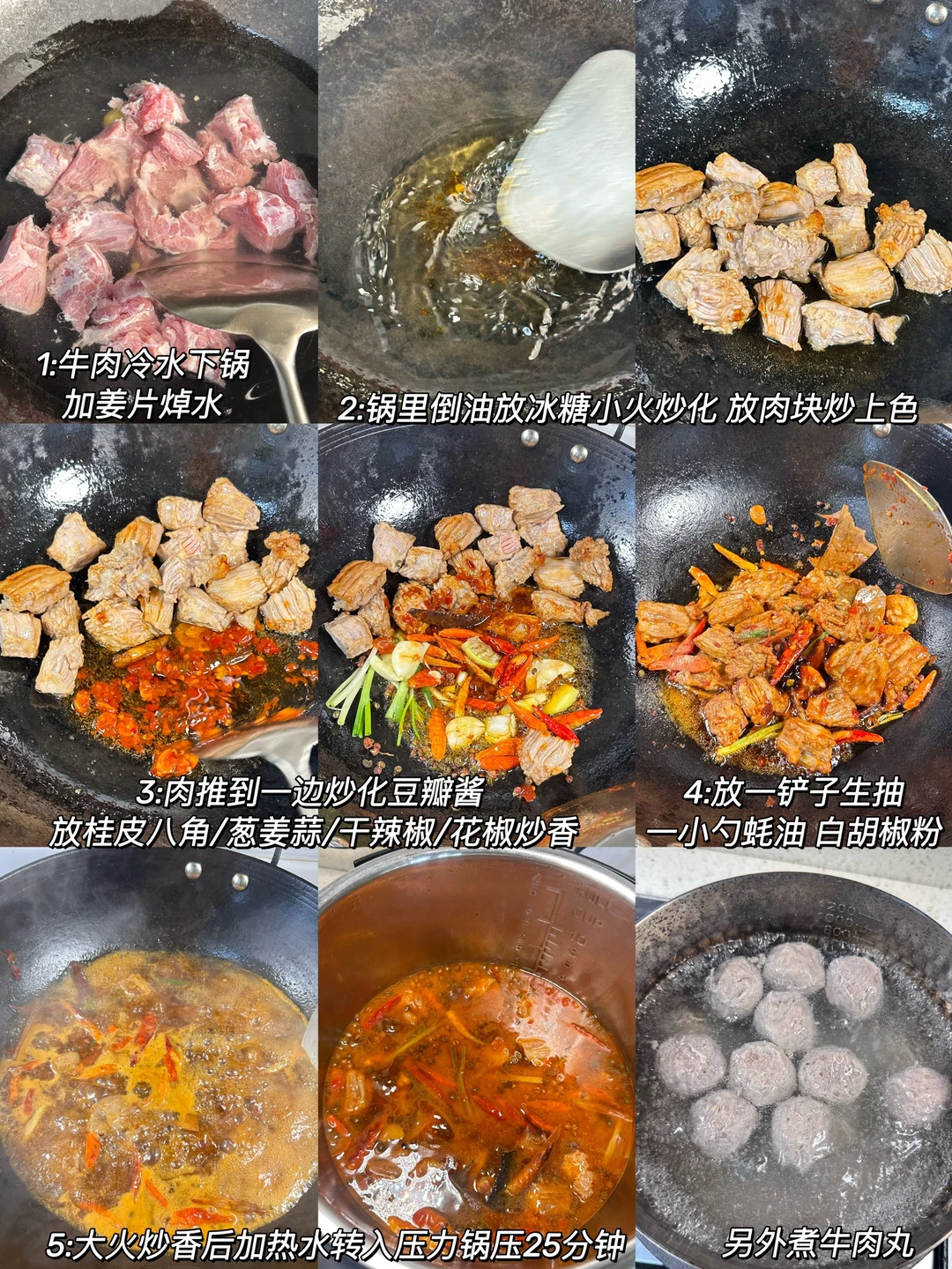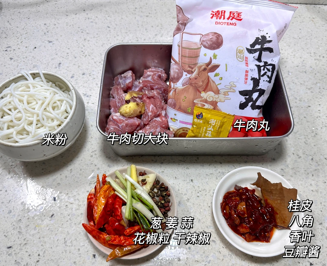 ✨食材:牛肉 米粉 牛肉丸 姜 蒜 葱 豆瓣酱 桂皮 八角 香叶 冰糖