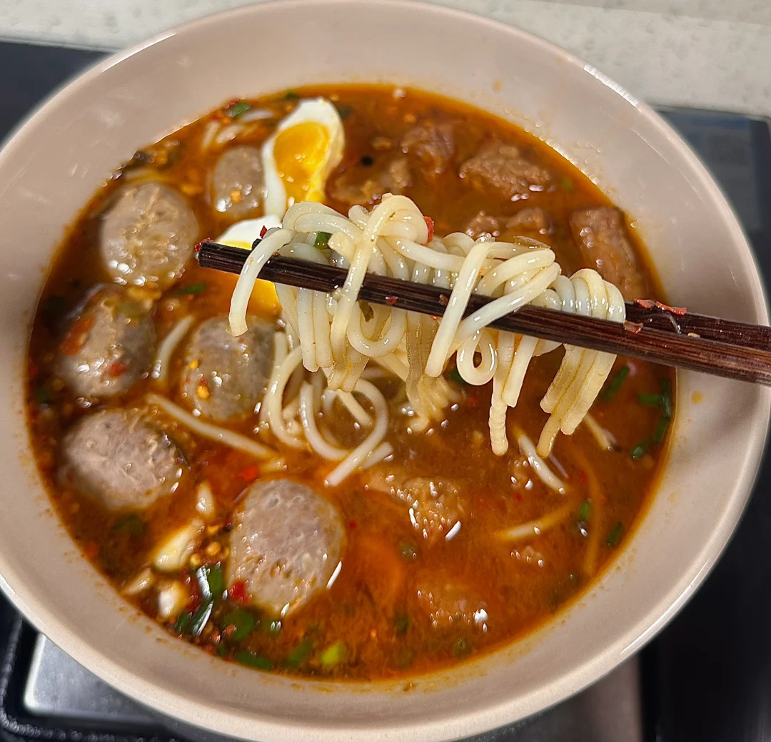牛肉和牛肉丸加到爽[偷笑R][偷笑R]又鲜又辣 吃了一大碗[doge]