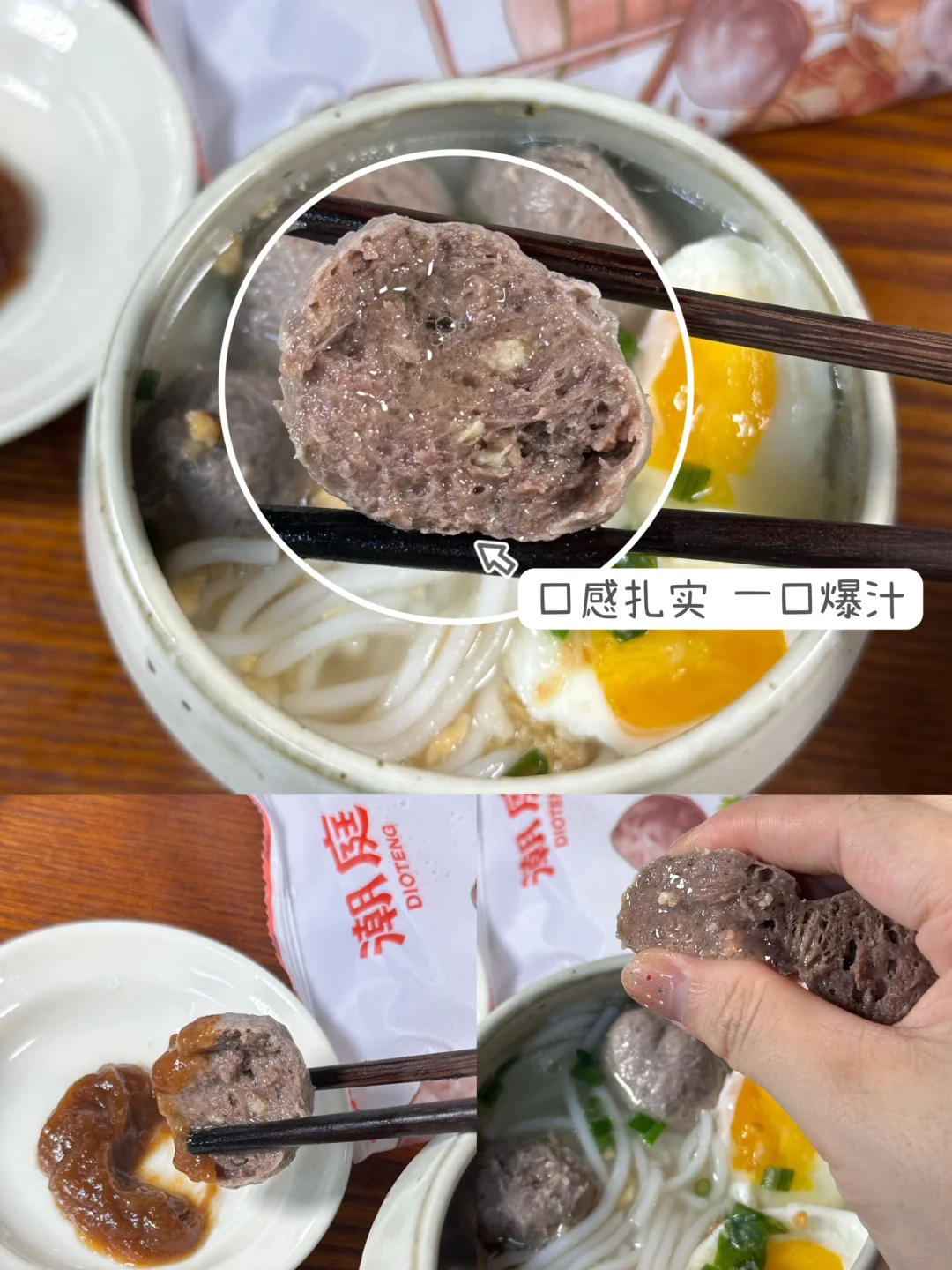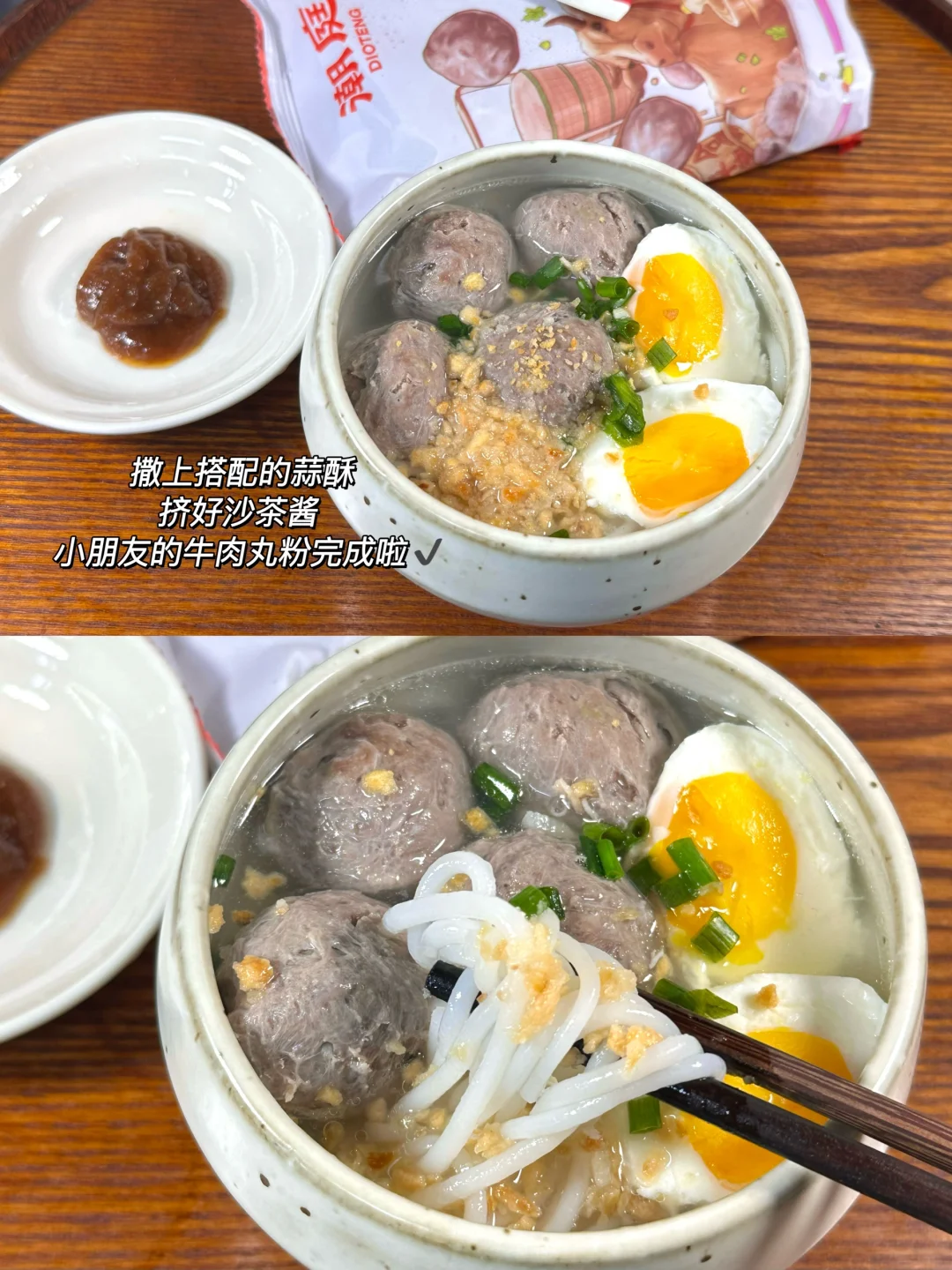 冰箱必囤,偶尔早上小朋友迟到赶不上学校的早餐 煮几个牛肉丸 烫点米粉不要太方便[偷笑R]配料表不添加香精,小朋友也能放心吃[害羞R]口感蛮扎实的~肉感满满 还会爆汁 贴心的搭配了蒜酥和沙茶酱 怎么做都好吃。