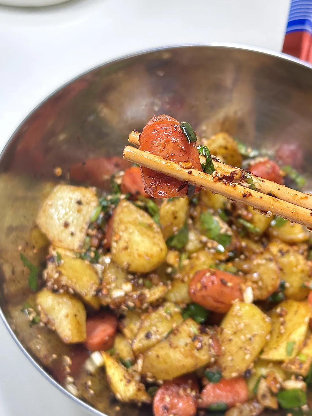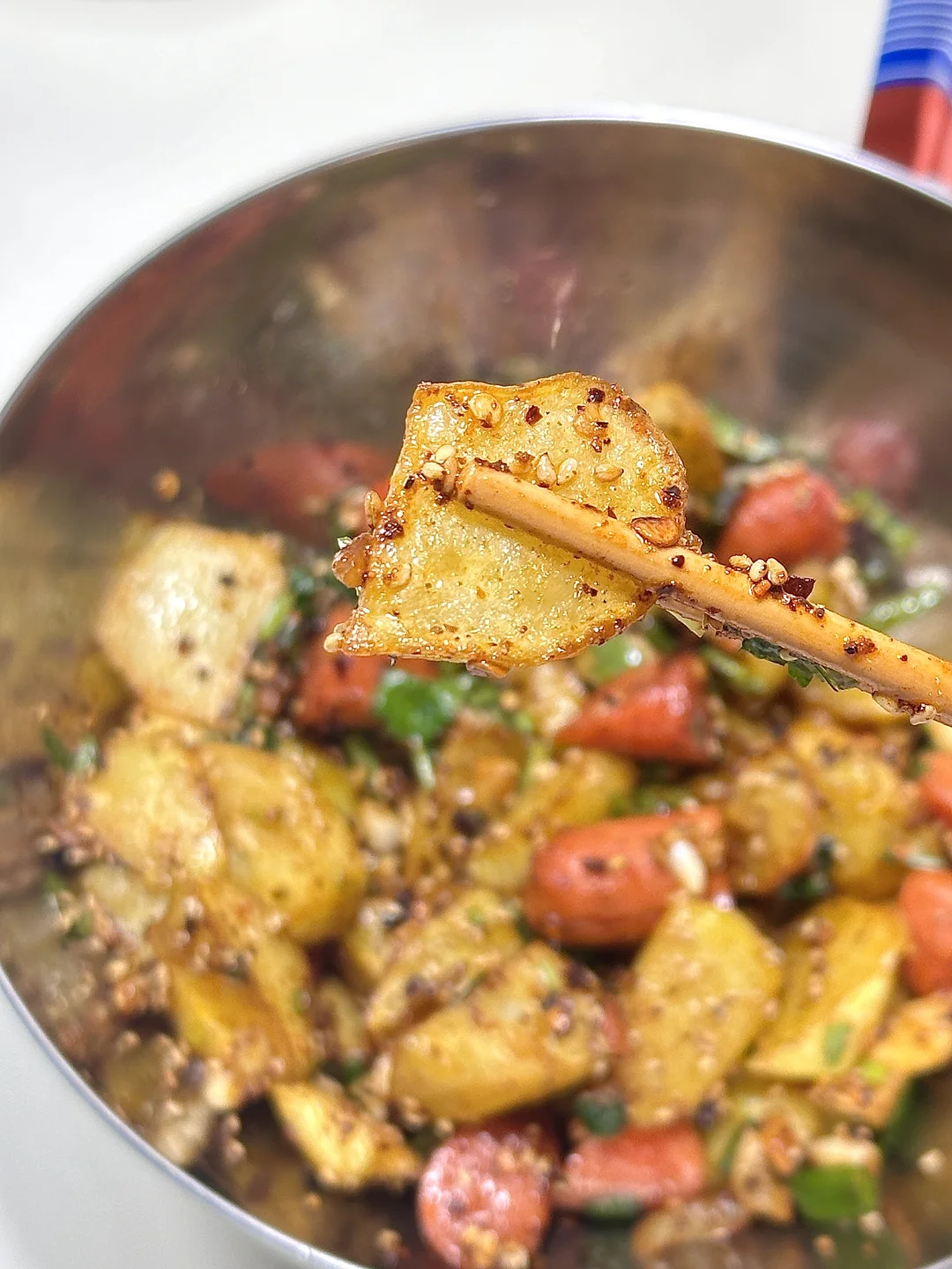 香辣卤猪蹄 烤猪蹄 一吃一个不吱声 软糯入味 又稍微带点嚼劲 口感超棒~还拌了一个学校小吃摊的常驻嘉宾 锅巴土豆 🥔 香~在春天幸福地吃饭