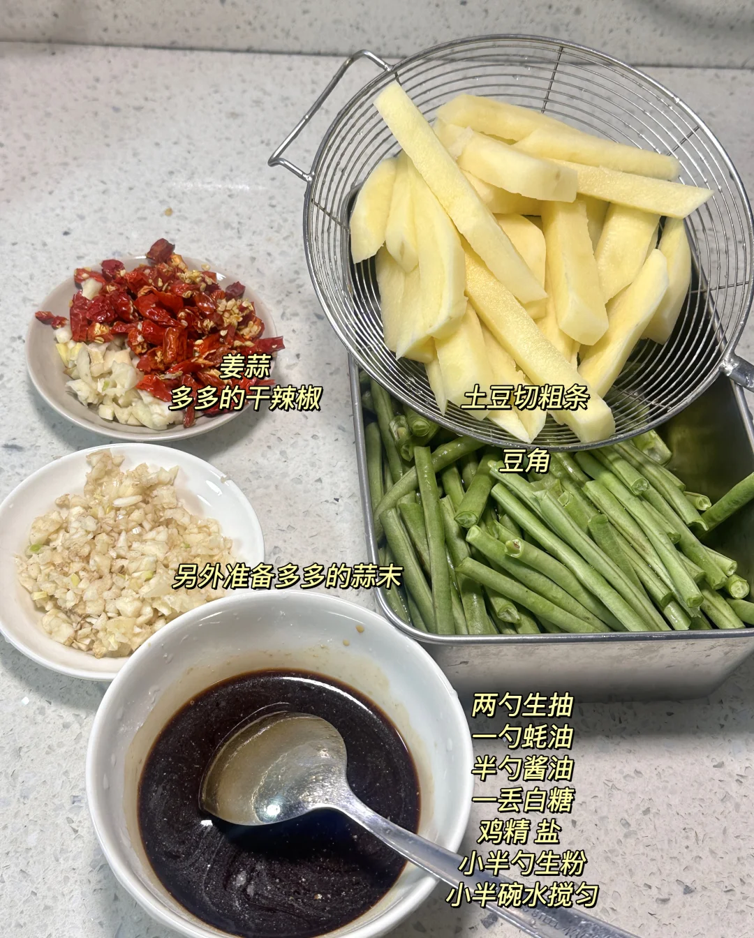 ✨食材:豆角 土豆 姜蒜 干辣椒