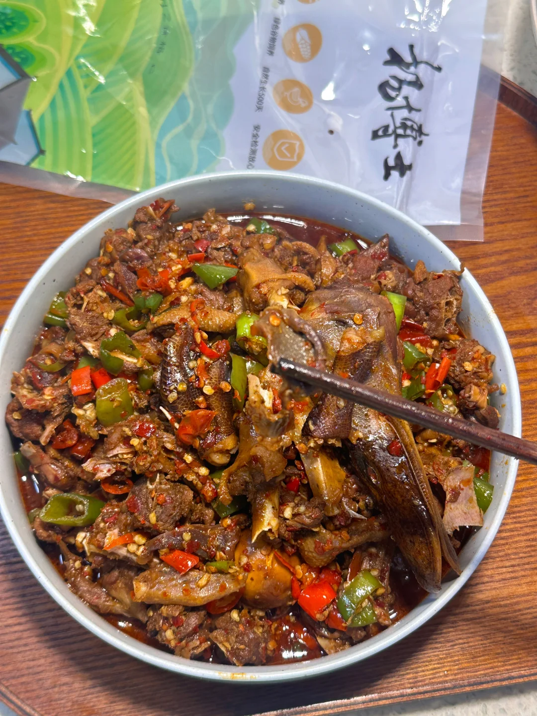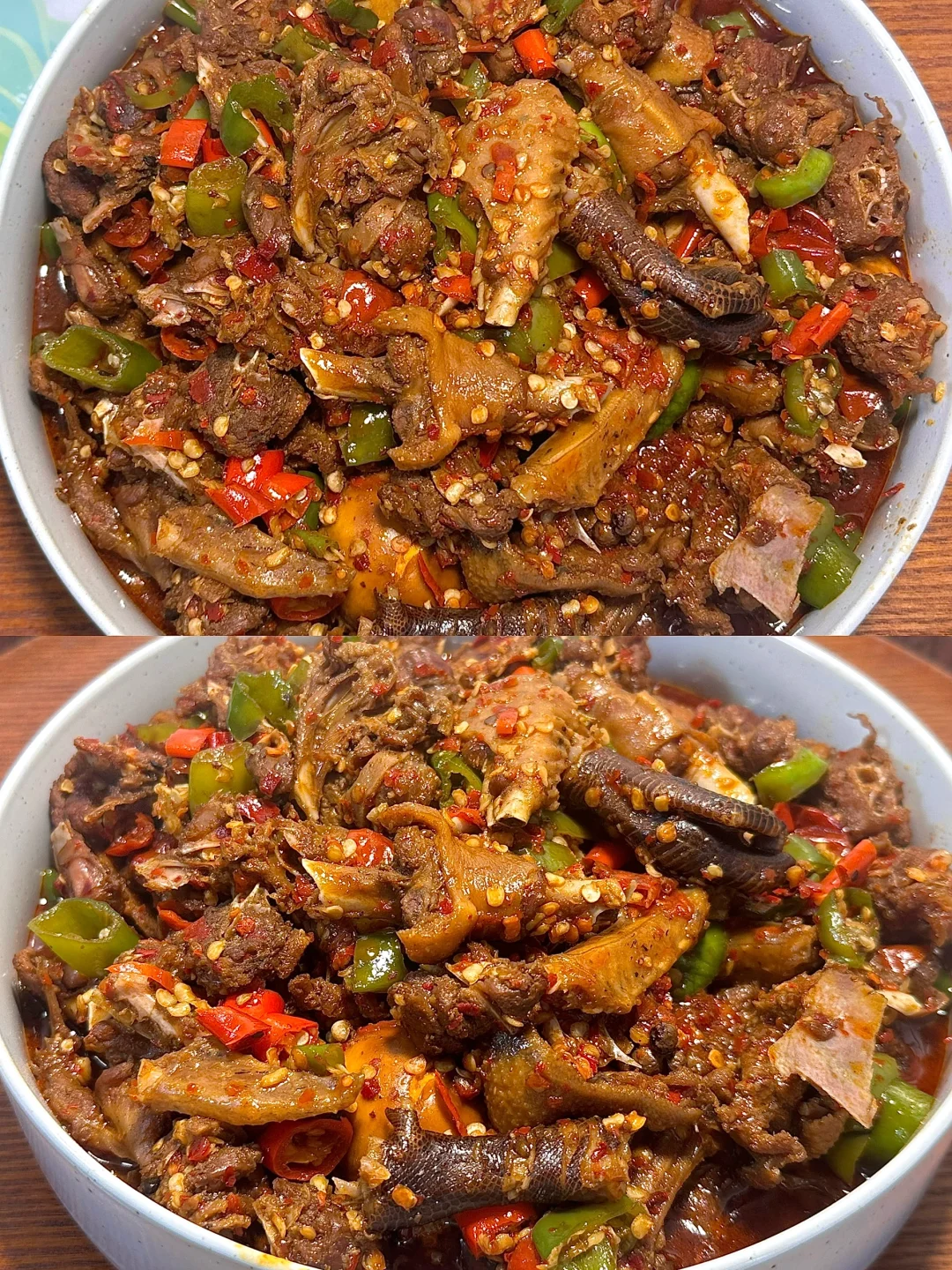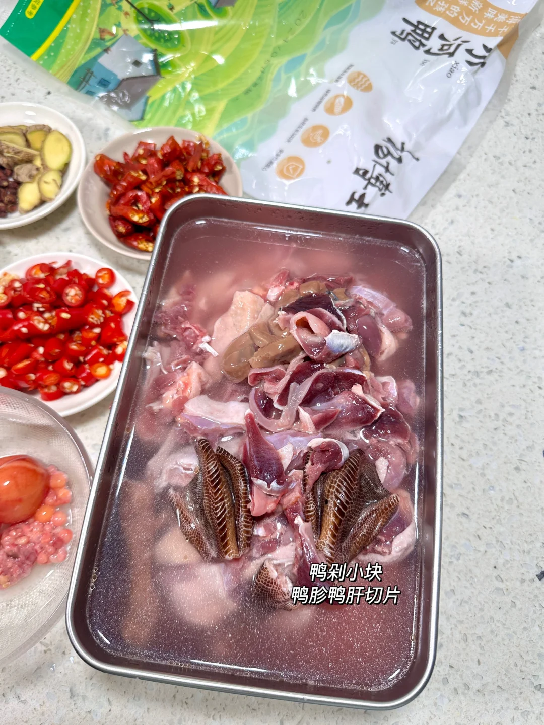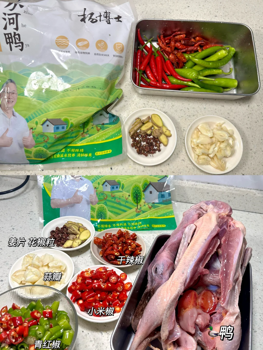 ✨食材:鸭🦆 姜片 花椒粒 蒜 干辣椒 青红椒