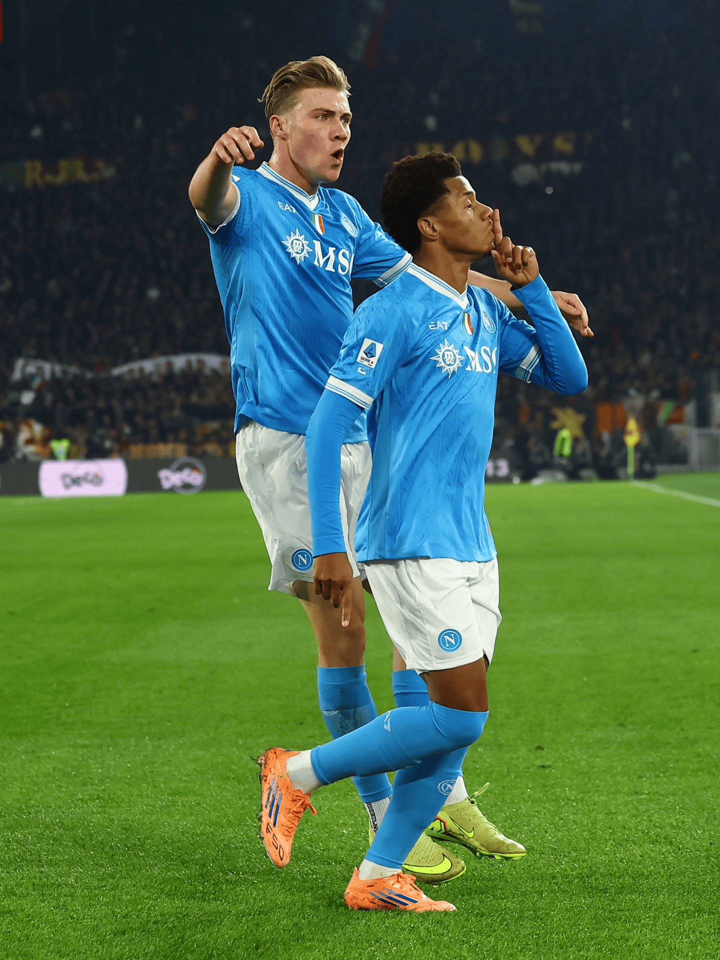 赛后,他更新社媒,发布了自己与内雷斯庆祝进球的画面并附文:“当我们到了罗马……”