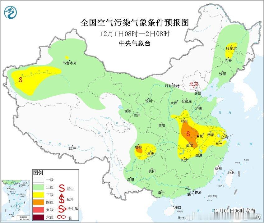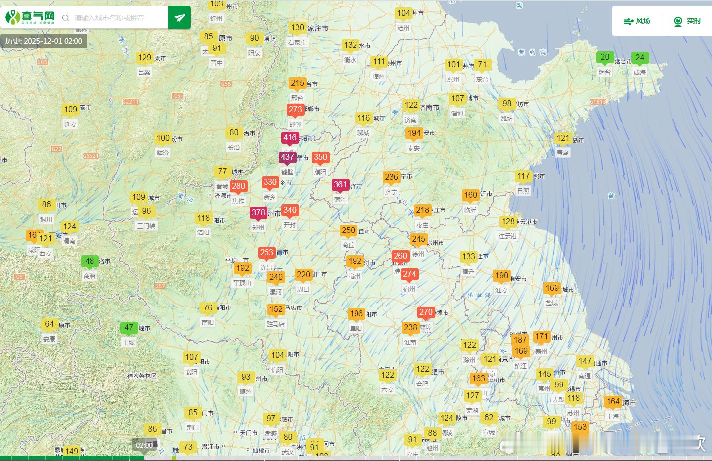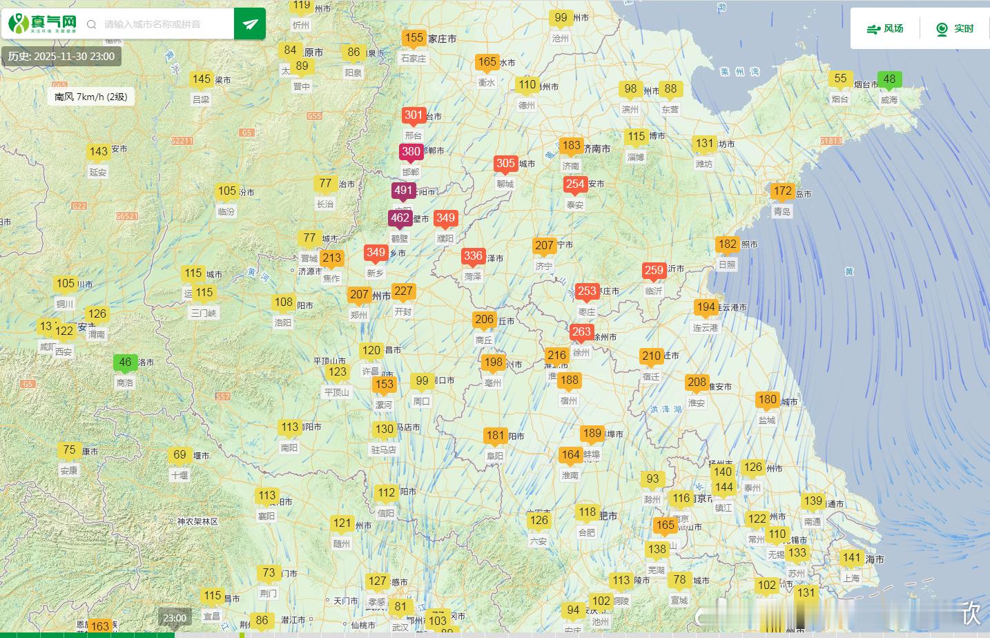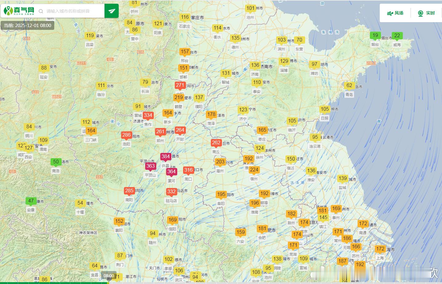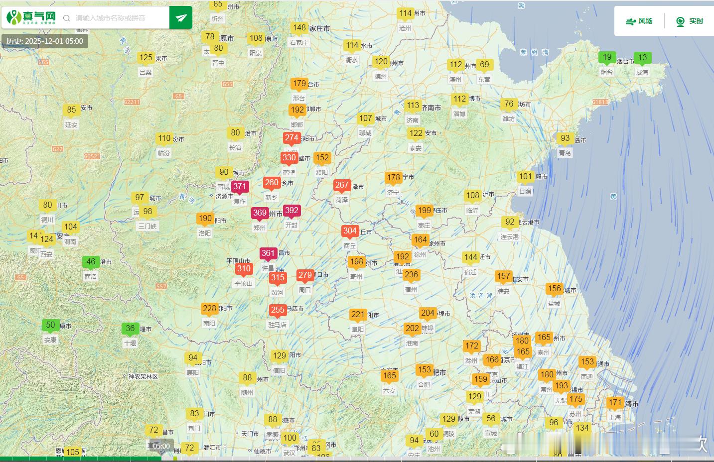 【沙尘】昨晚到今晨,沙尘随着偏北风,向南传输。河北山东PM10浓度逐渐下降,江苏安徽的PM10短暂升高后也开始下降。今晨沙尘污染主要在河南。今天在偏北风的推动下,湖北的空气质量会转差。