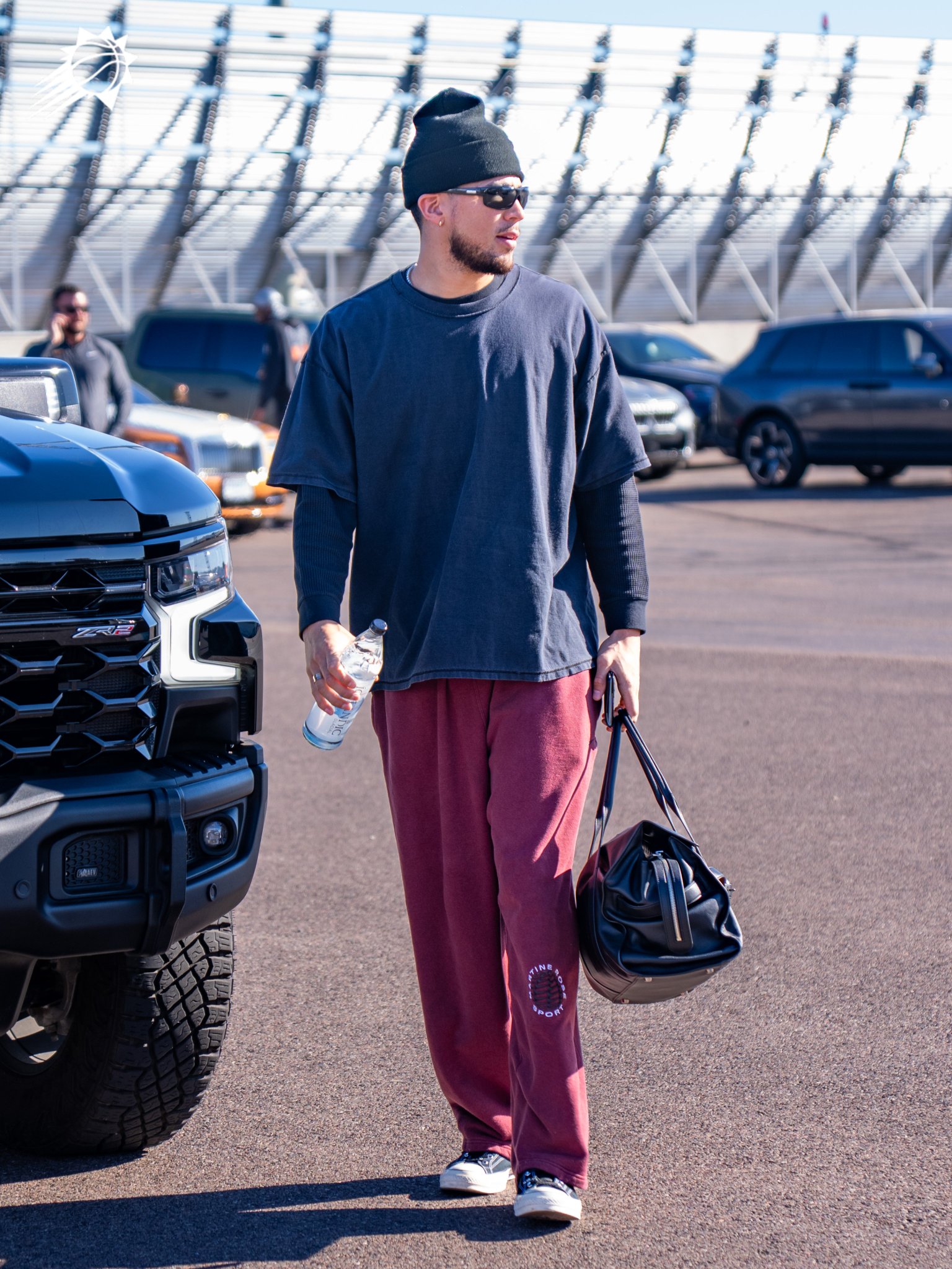 今日,太阳社媒分享球员德文-布克的登机照片,并配文: