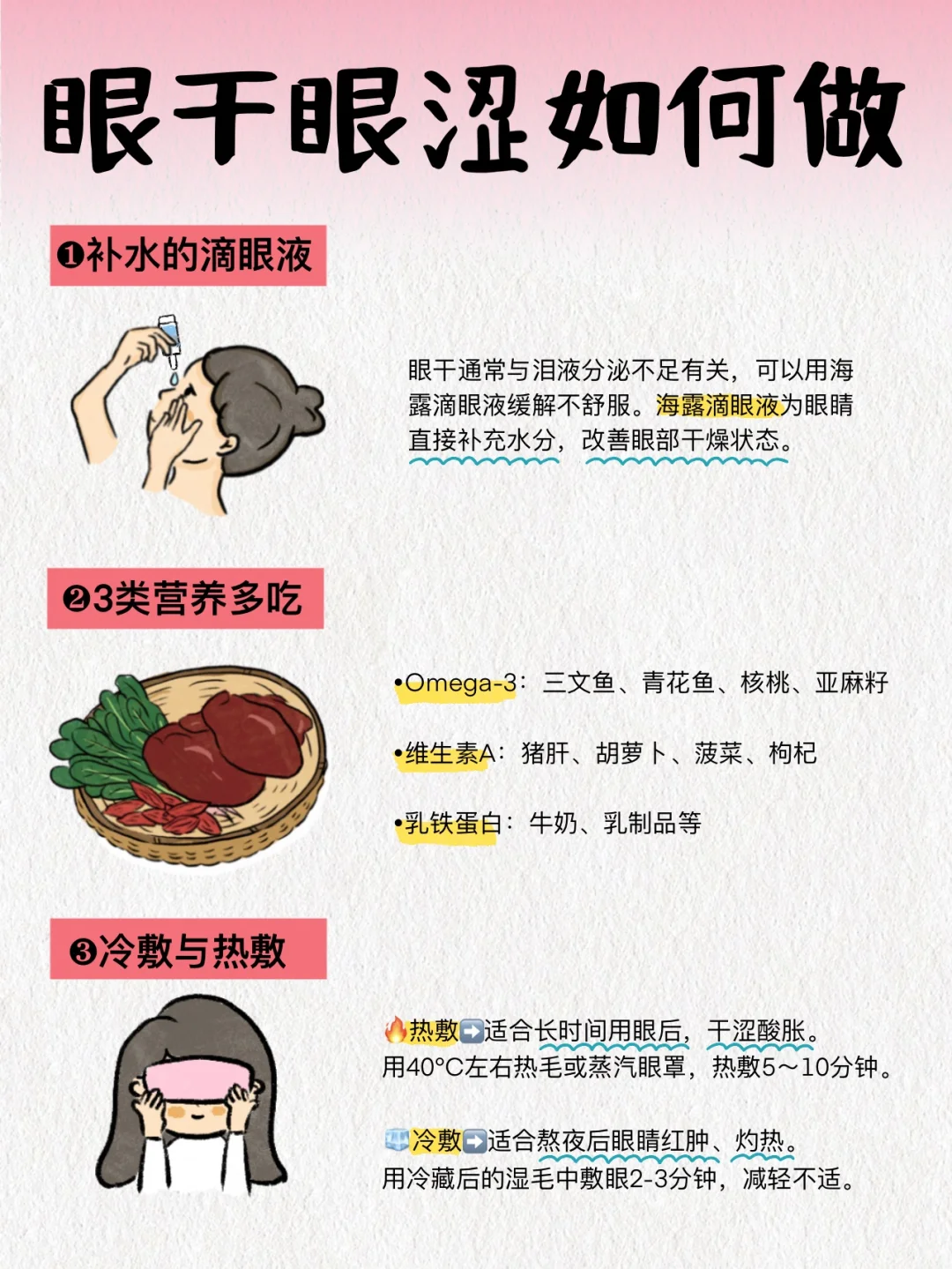 所以,要想从根本上缓解眼疲劳,最重要的就是【滋润双眼,缓解眼干】!
